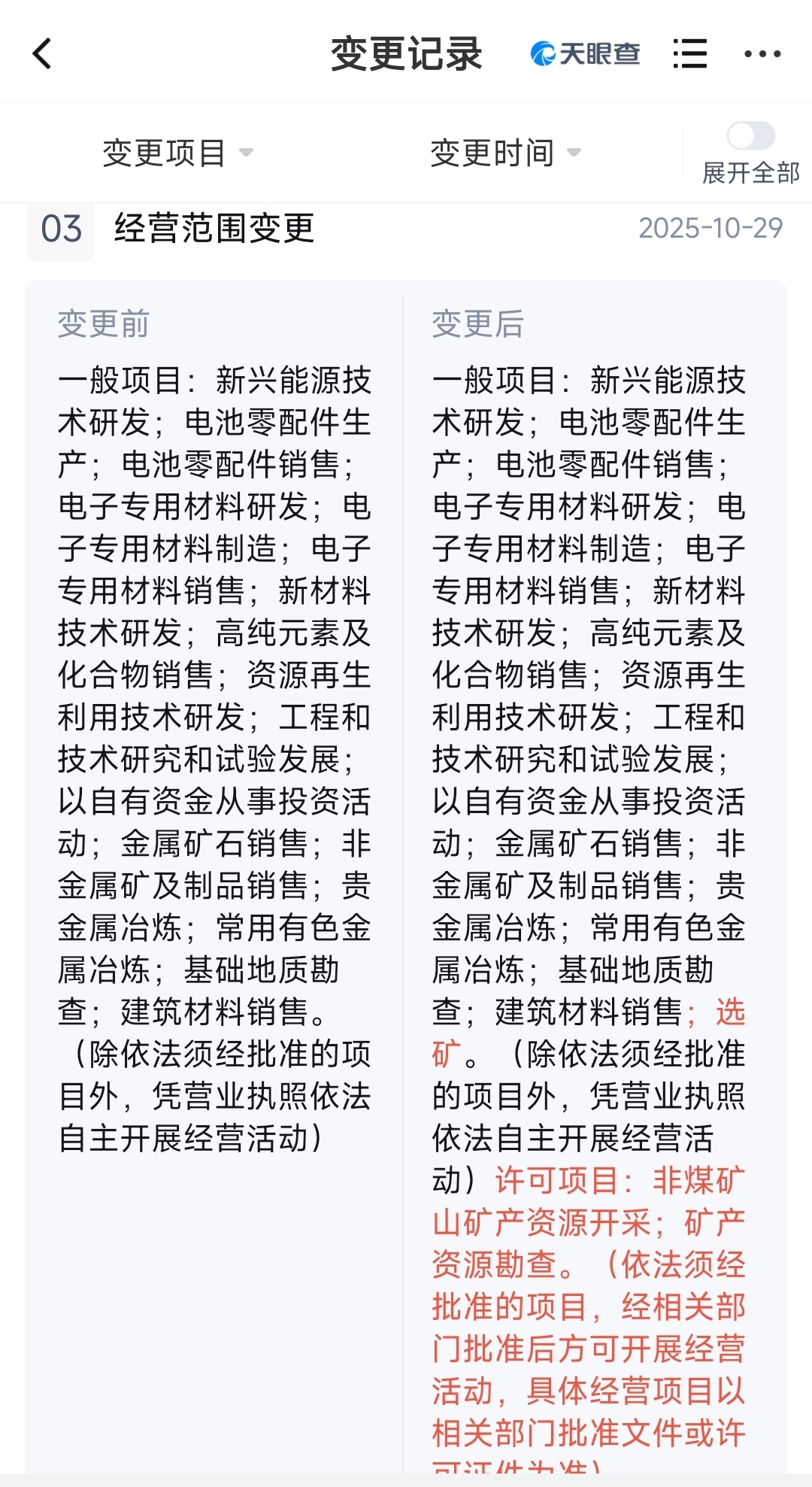 $大中矿业(SZ001203)$ 速度很快!28号拿到锂矿采矿证,湖南大中赫29号就完成经营范围变更了。