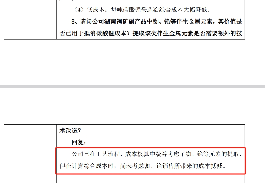 $大中矿业(SZ001203)$ 划重点,值钱的铷,铯算了提取成本,但是没有算销售收入