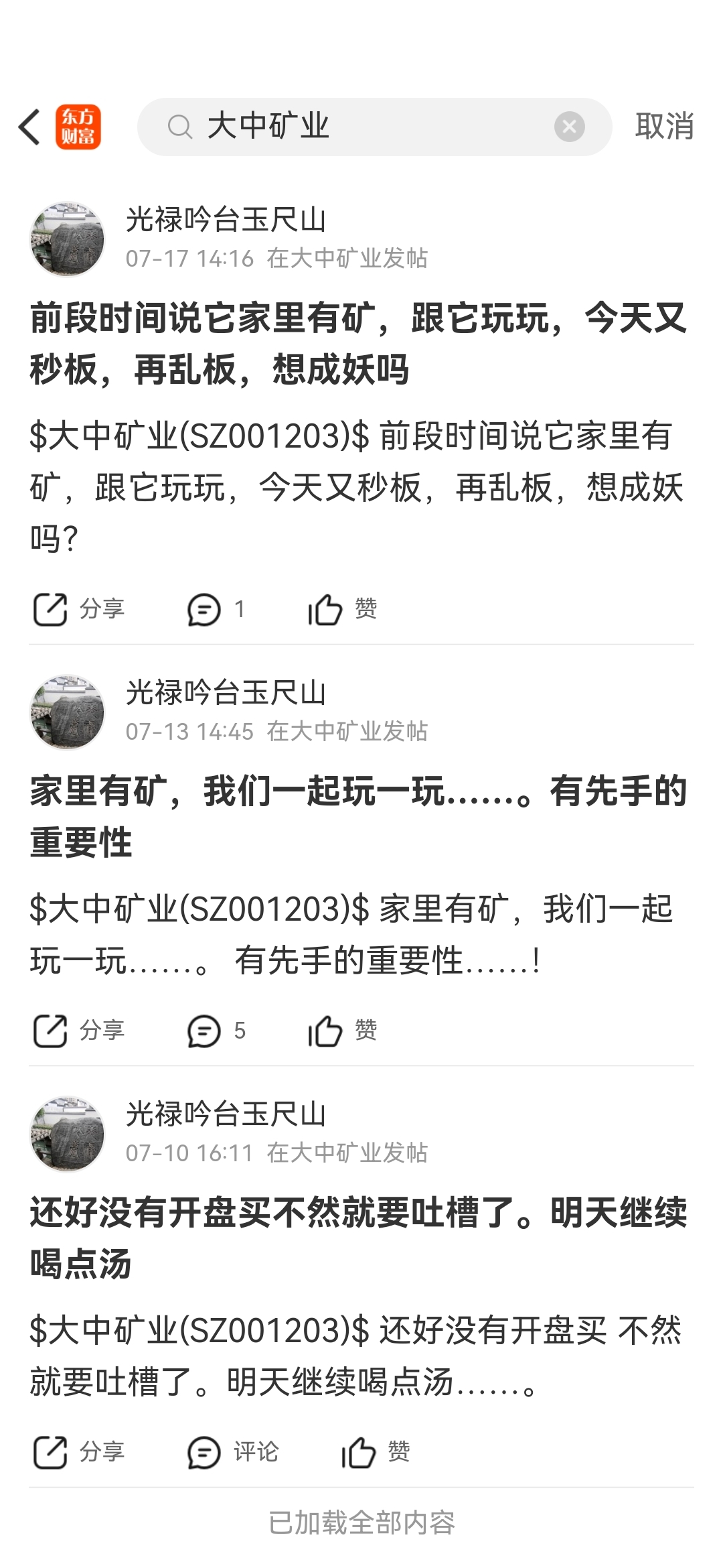 $大中矿业(SZ001203)$ 7月份反复说过大中矿业,谁又把它当回事呢?当回事的时候,谁又能坚持到连板之时呢?