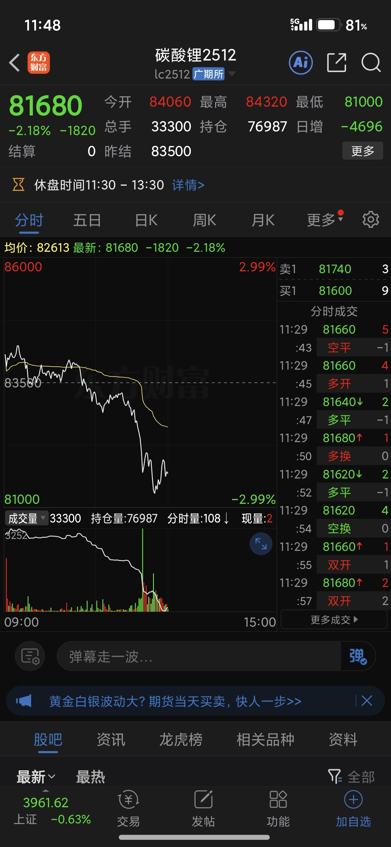 $大中矿业(SZ001203)$ 碳酸锂期货价格,所以转债跌了,正股可能要开,但是有一个问题,那就是2-3还有品种吗?