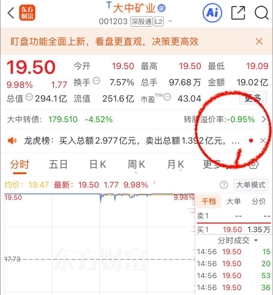 $大中矿业(SZ001203)$ 你是真的猛啊,顶着转股的压力尽然还敢板!这三天转债量这么大,众兴你还没有减持完吗?