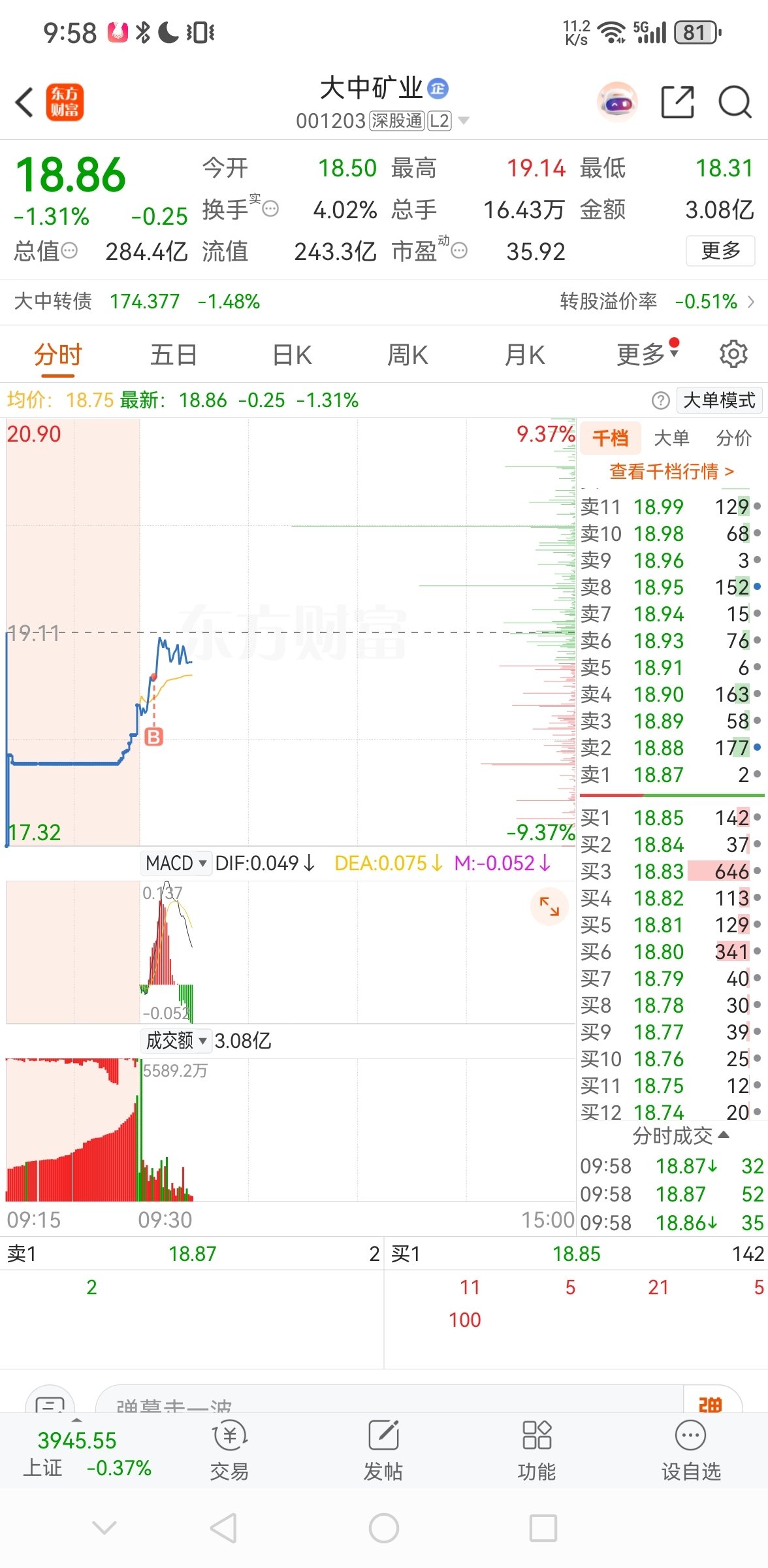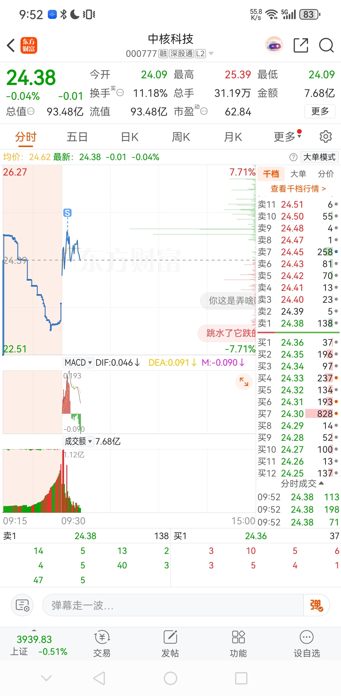 大中别砸了,咱们一起做大做强,中核科技止盈