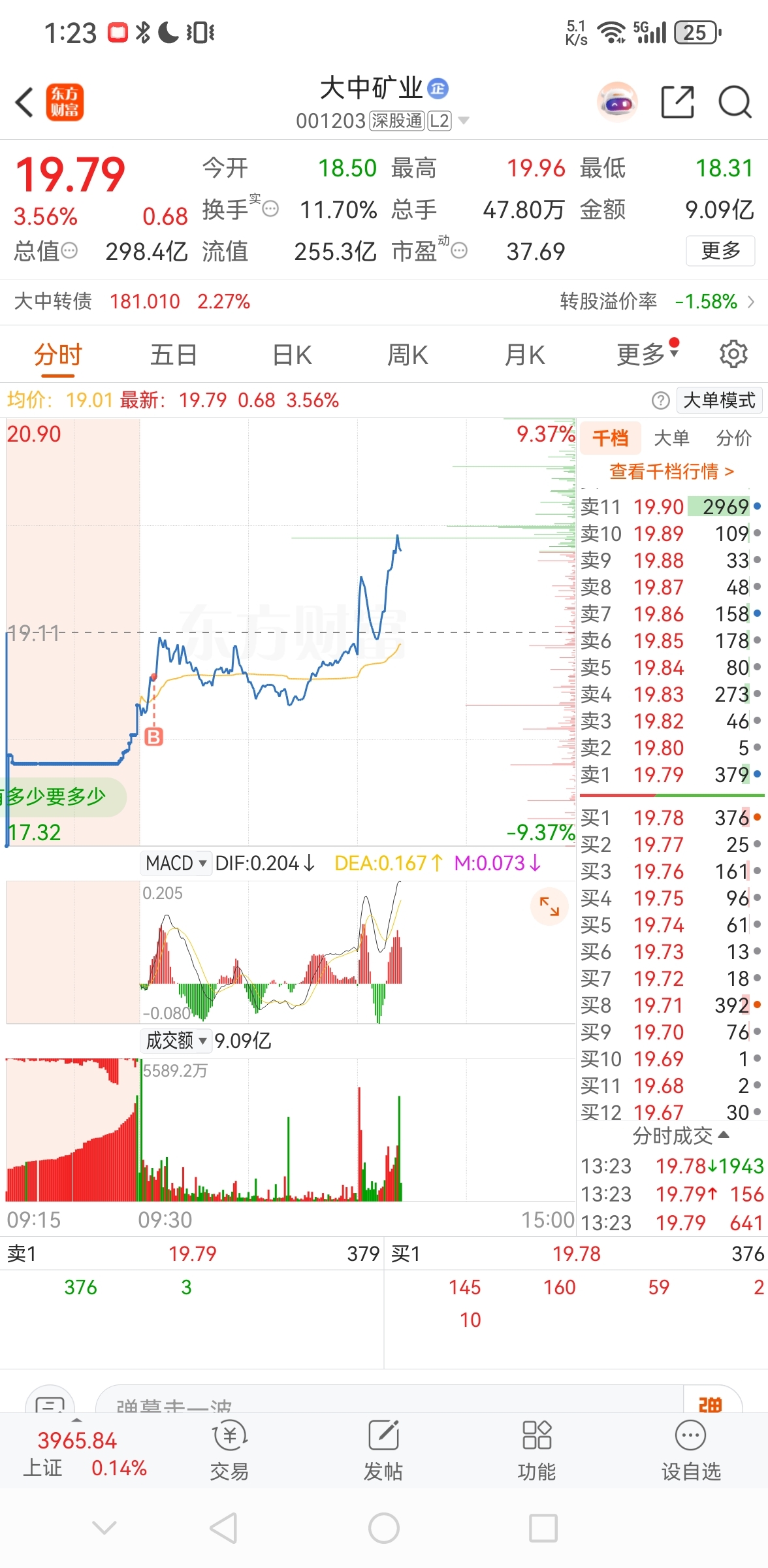 $大中矿业(SZ001203)$ 主力怪好的,我进来就开始啦了