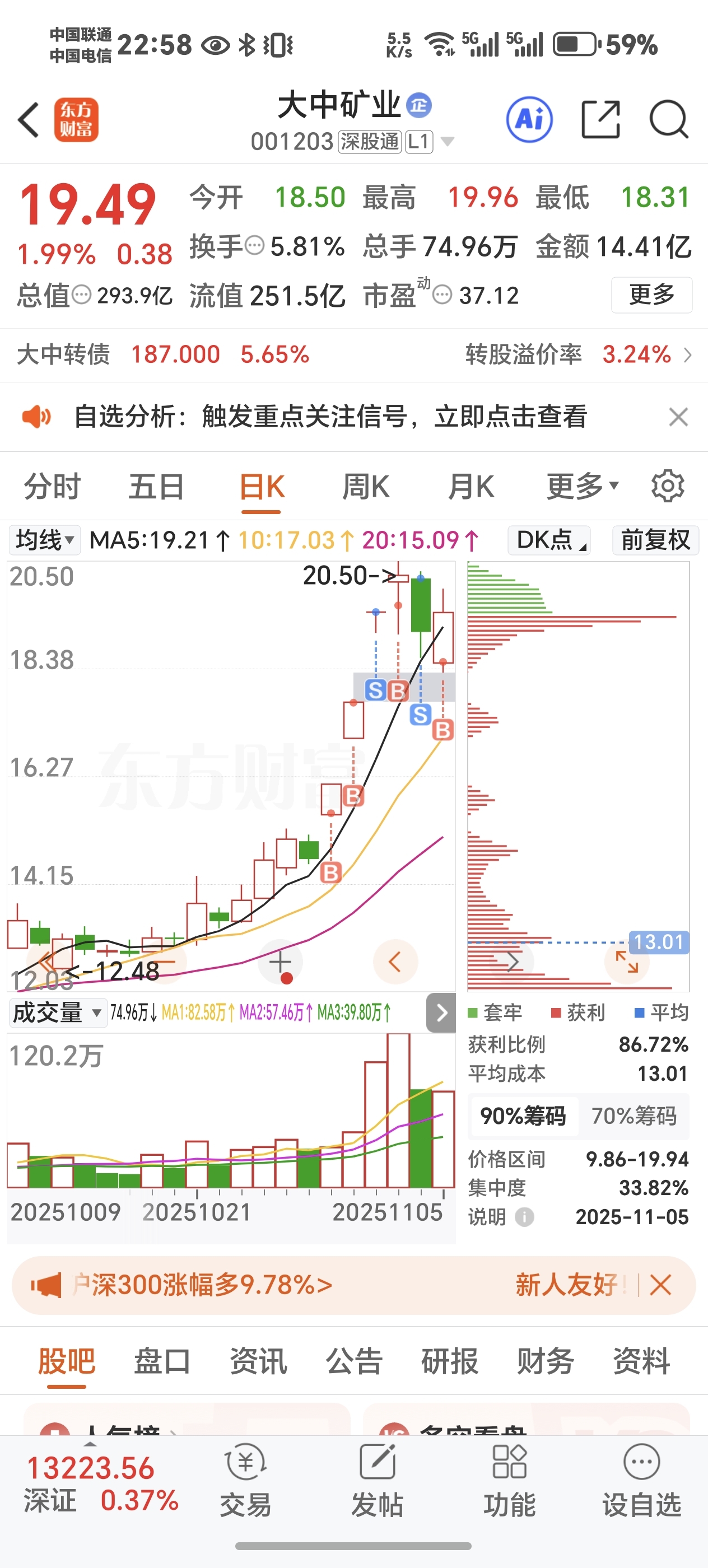 $大中矿业(SZ001203)$ 打算长期持有做T了,做这只票不能心急