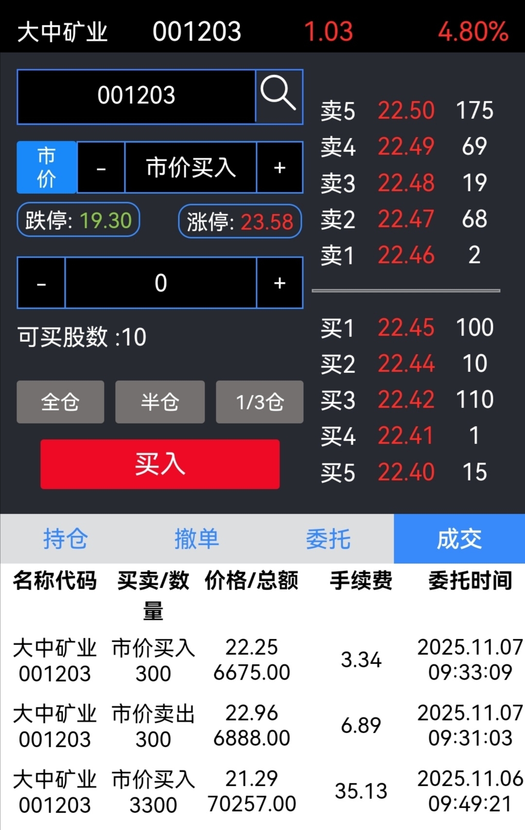 $大中矿业(SZ001203)$ 冒着涨停的风险小仓位做T挣了两百块钱