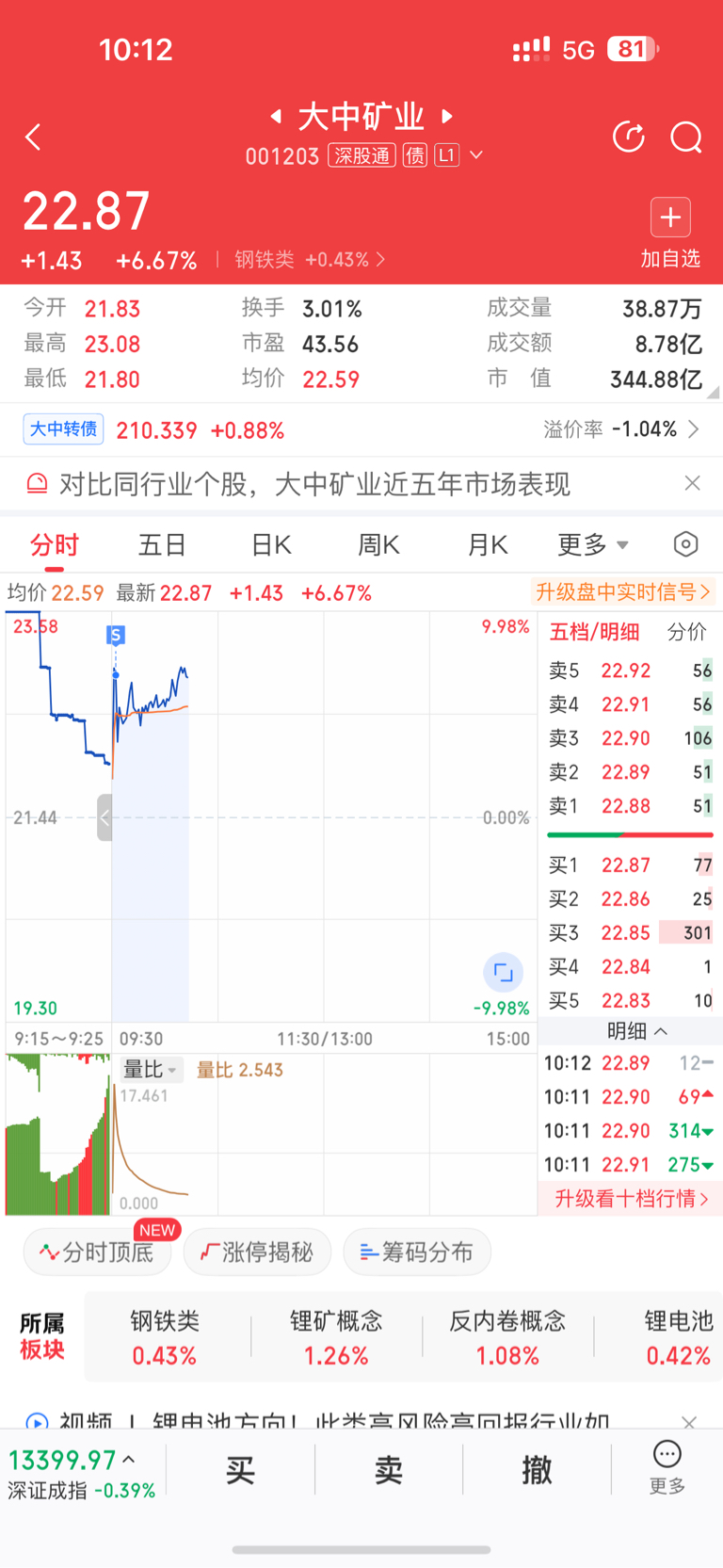 早上七个多点走了,追了海工,看到下午涨停,还有点小懊恼,周一走势难料,希望大中越
