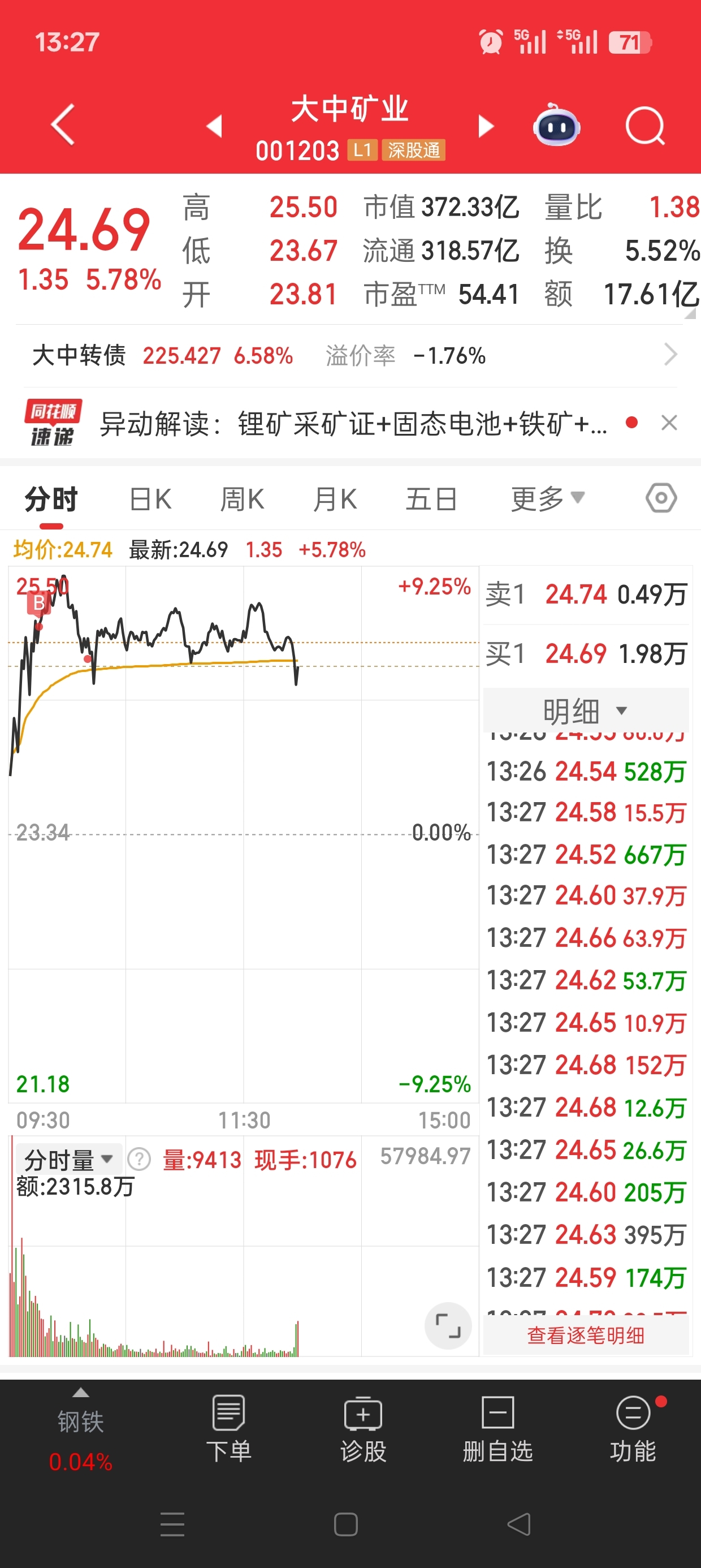 $大中矿业(SZ001203)$ 砸的真狠