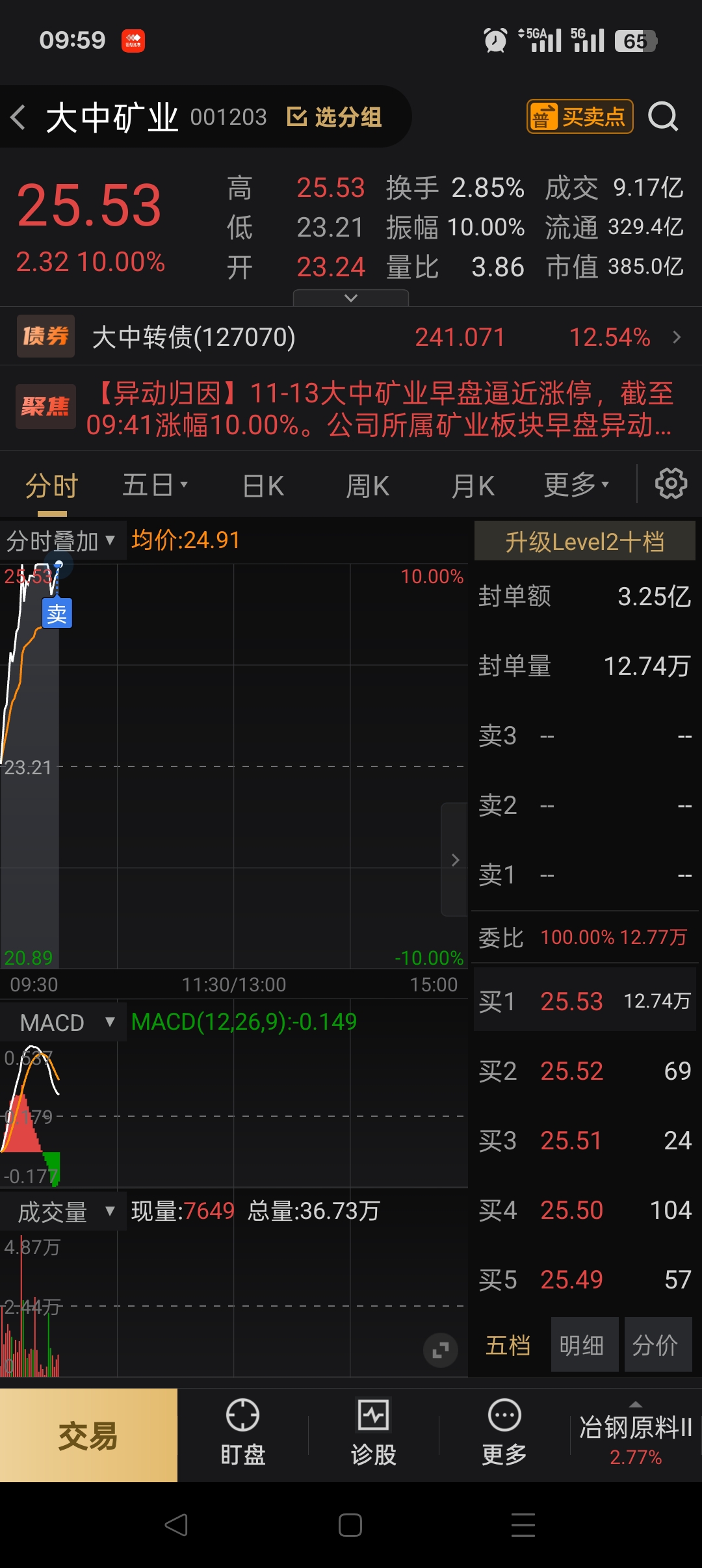 $大中矿业(SZ001203)$ 靠 二次炸板走人 坚决执行纪律