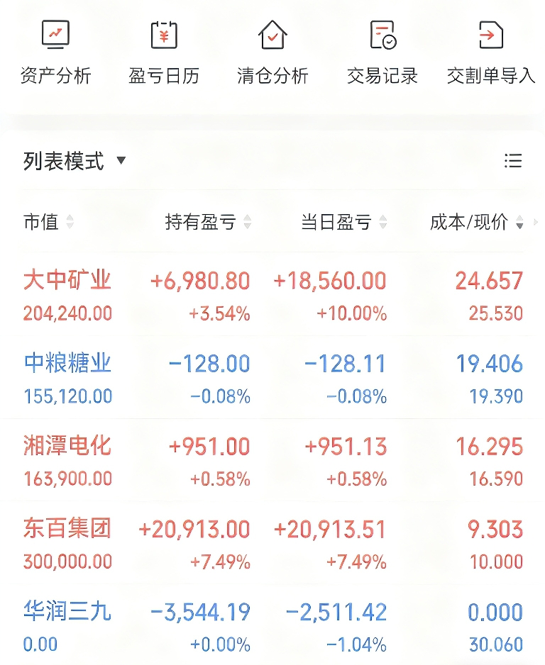 $大中矿业(SZ001203)$ 发了两天涛,今天才上板转赢。下了昨天的华润三九,拉胯!接力了早上说的备选,一个是消费的$东百集团(SH600693)$ 另一个是$中粮糖业(SH600737)$ ,前者接力上板,后者就一般了。尾盘上了湘潭电化,看下明天表现啊!#炒股日记# #实盘记录#