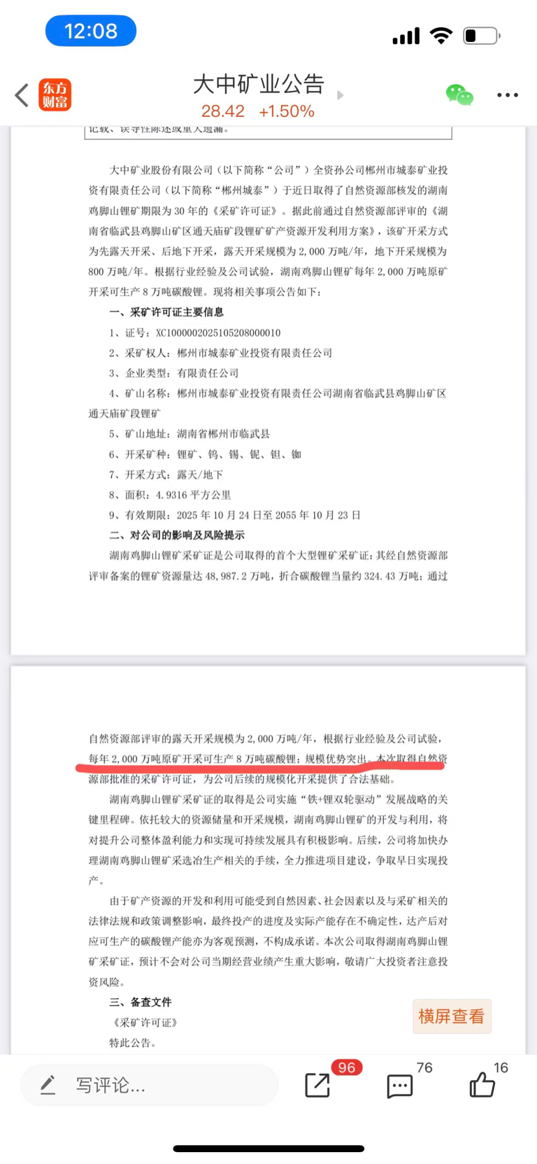 $大中矿业(SZ001203)$ 广期所的新规导致吃两个跌停,更改不了基本面的变化以及后面碳酸锂的需求旺盛,两年内看到80,未来看到200!光临武每年就能有年产8万吨的产量,后面四川还有5万吨,13万吨碳酸锂,现在10万一吨,大中的成本低于4万一吨,利润有6w一吨,一年净利润差不多能到80个亿,不算铁矿不算伴生矿,以及不算后面涨价的问题!给20倍pe吧,1600亿市值,对应股价在110元每股!