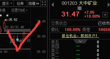 大中矿业黄线(庄家成本线),自救回血,回血结束,卖出了结。