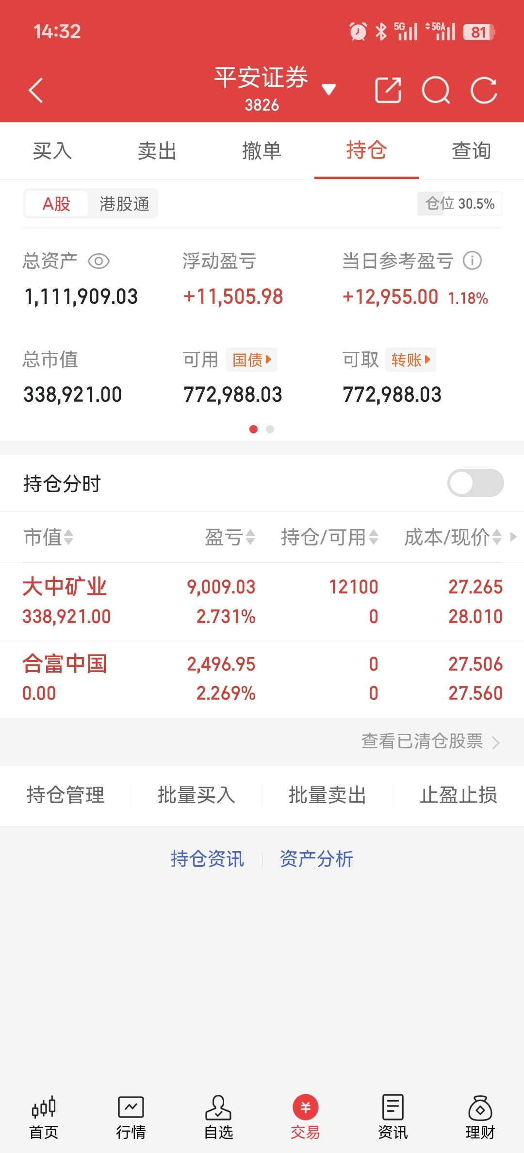 $大中矿业(SZ001203)$ 大中矿业早盘过猛了,尾盘熄火了。也知足了,今天的操作也是成功。早盘合富中国冲高出来,进了大中。跟上的兄弟出来点个赞加个关注,把人气吵起来。