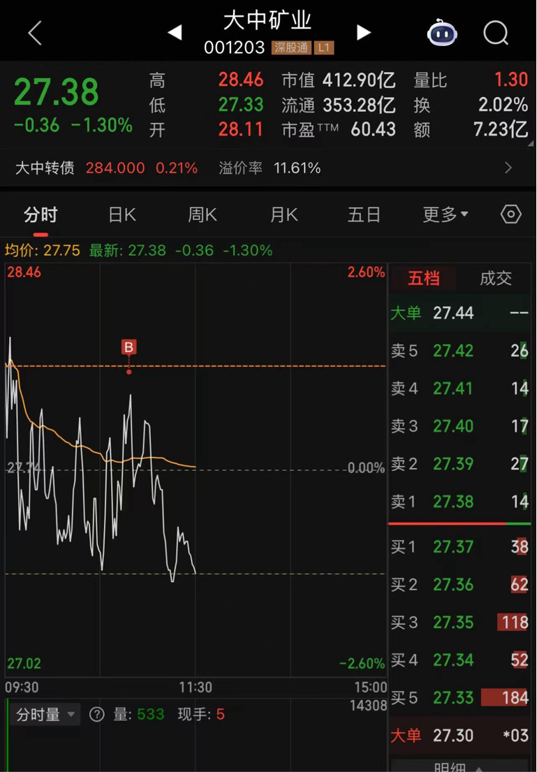 $大中矿业(SZ001203)$ 韭菜驾到,空中加油