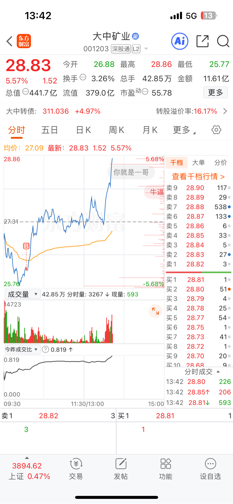 $大中矿业(SZ001203)$ 才买了0.3层仓啊