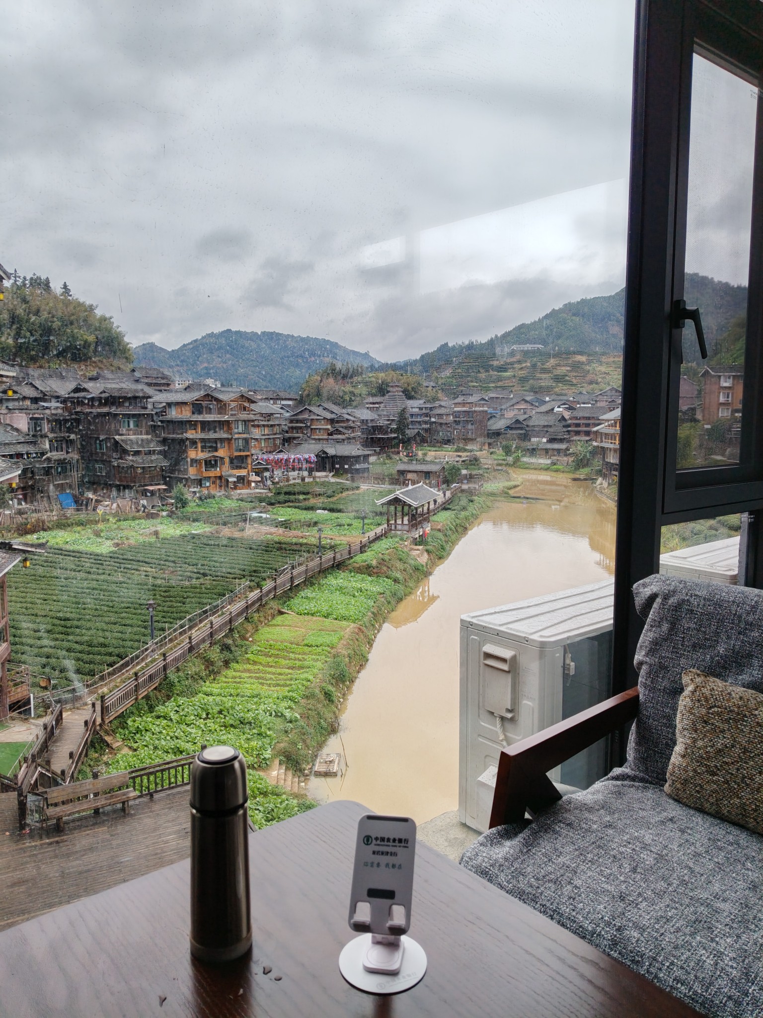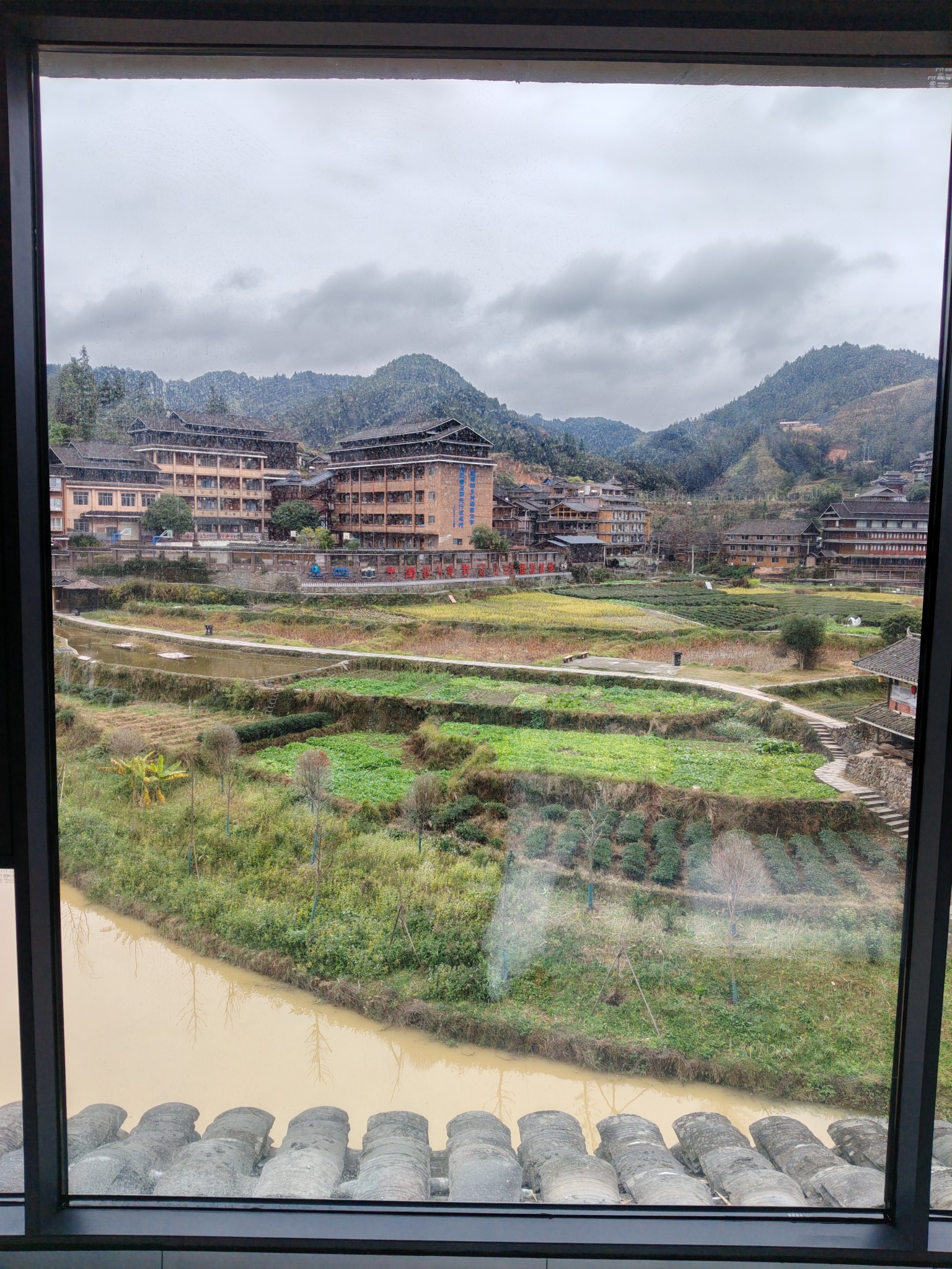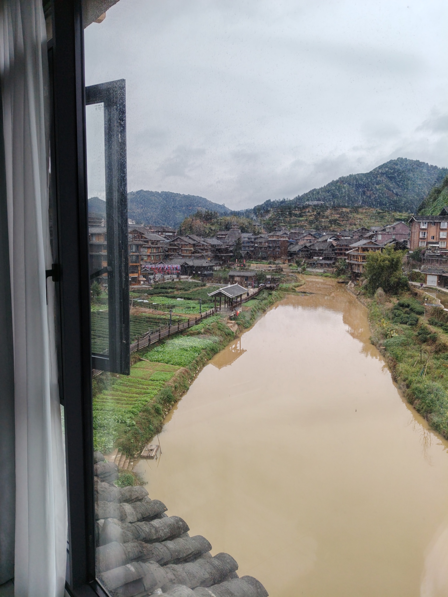 风雨桥边,田园风光。山似元宝,水如金带。愿我大中,日日长红!