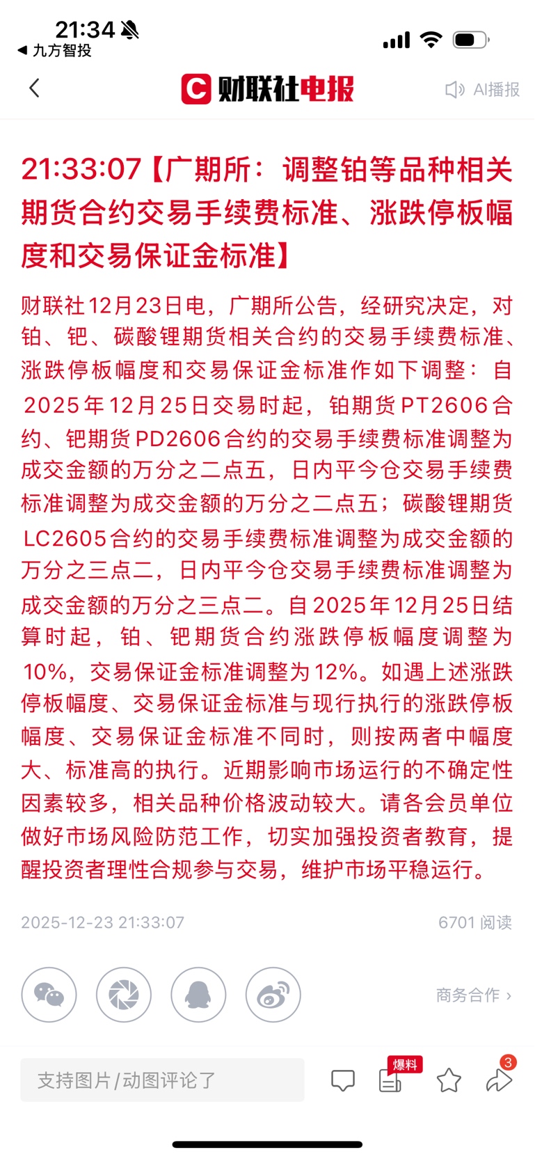 日内平今仓交易手续费标准调整为成交金额的万分之三点二,这次没有提高保证金,也没有进一步限仓。