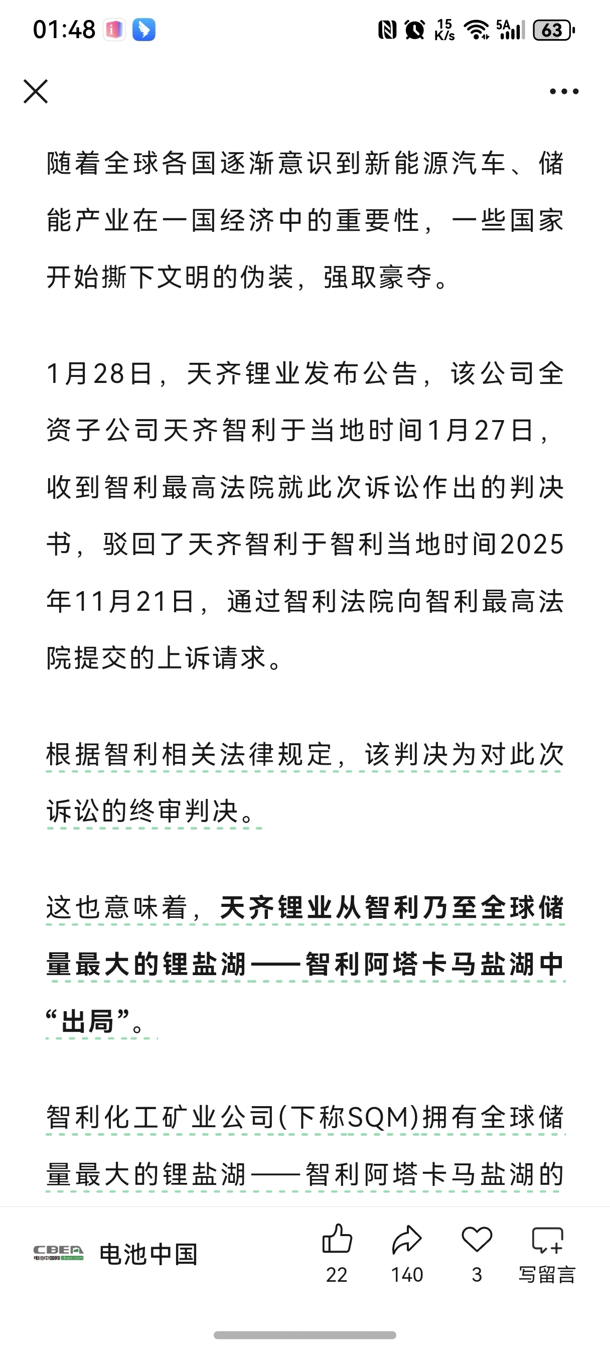 天齐的智利项目彻底废了,大中的地位会逐渐凸显