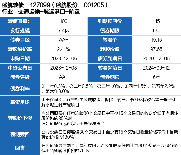 盛航转债本次债券融资规模为7.4亿。本次发行规模较小,可转债规模越大流动性越好。