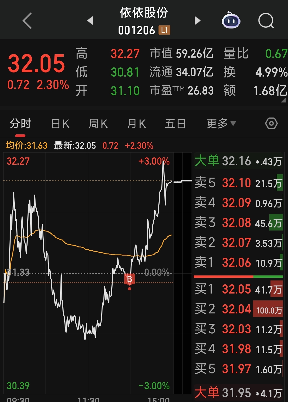 $依依股份(SZ001206)$ 没仓位了,进了一丢丢。看明天会咋样吧,最近短线宝票大多第二天不给溢价。