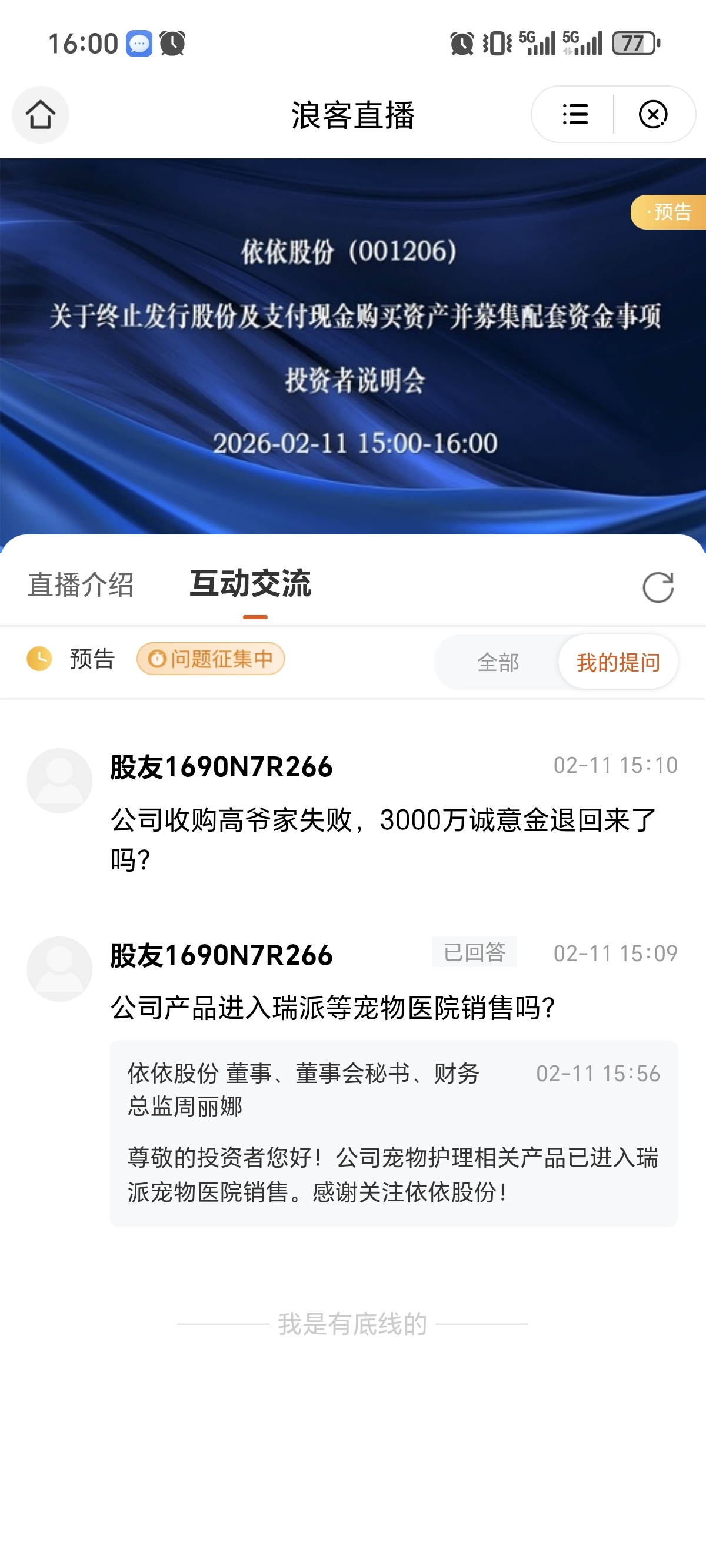 $依依股份(SZ001206)$ 我的问题回复了一个