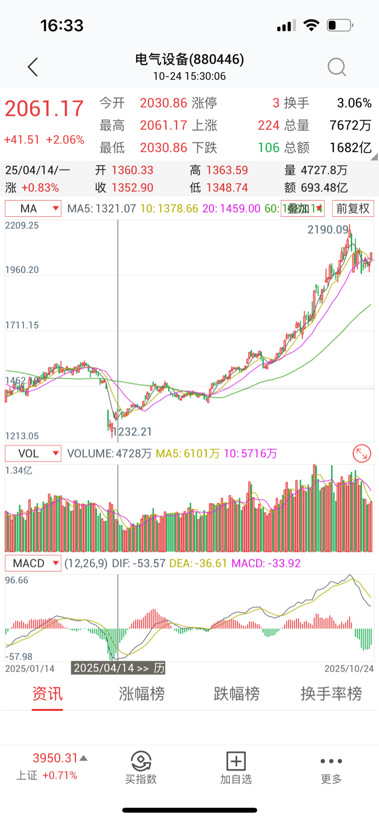 $华菱线缆(SZ001208)$ 板块指数将近翻了一倍,板块已经有见顶的趋势了。大盘顶多能上4000点。