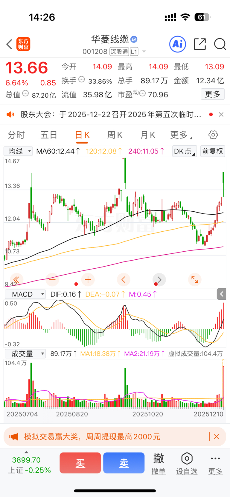 $华菱线缆(SZ001208)$ 这图形。明天又要扑街了哎。一点都不争气