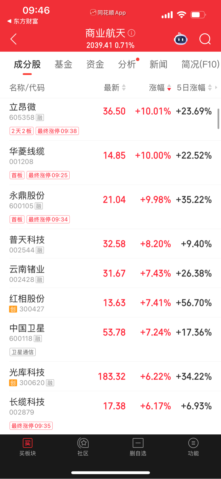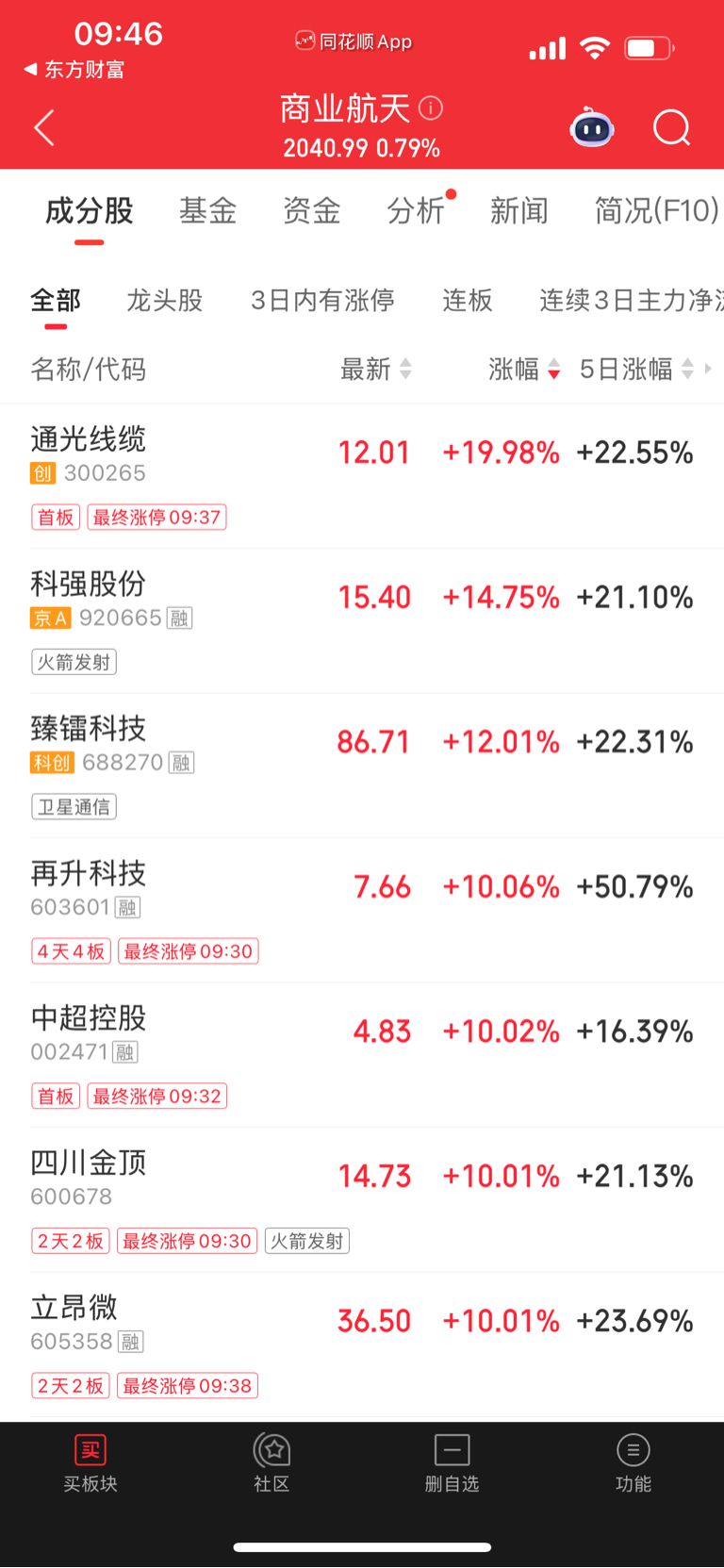 $华菱线缆(SZ001208)$ 今天消费板块走弱了,资金重新切换到商业航天赛道,火箭