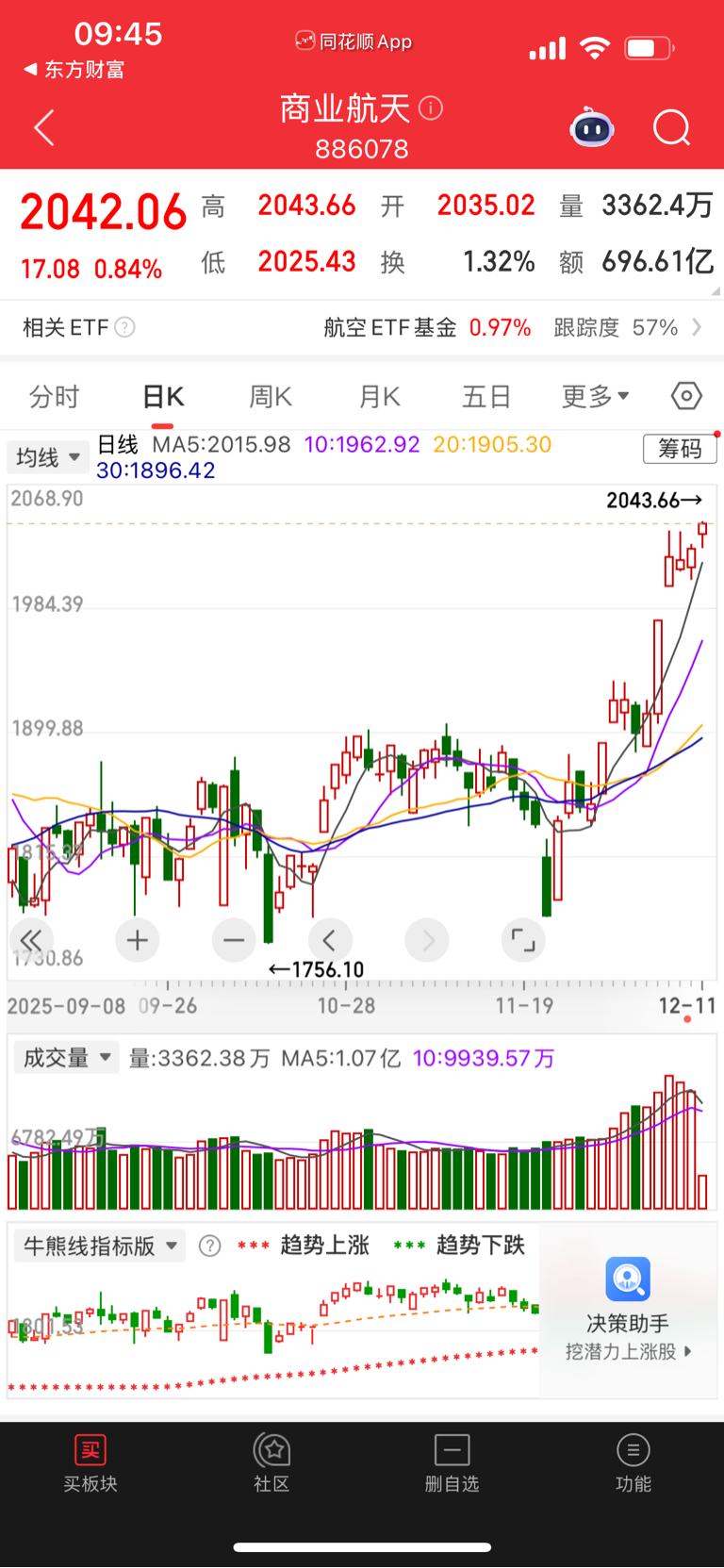 今天消费板块走弱了,资金重新切换到商业航天赛道,火箭老当益壮!