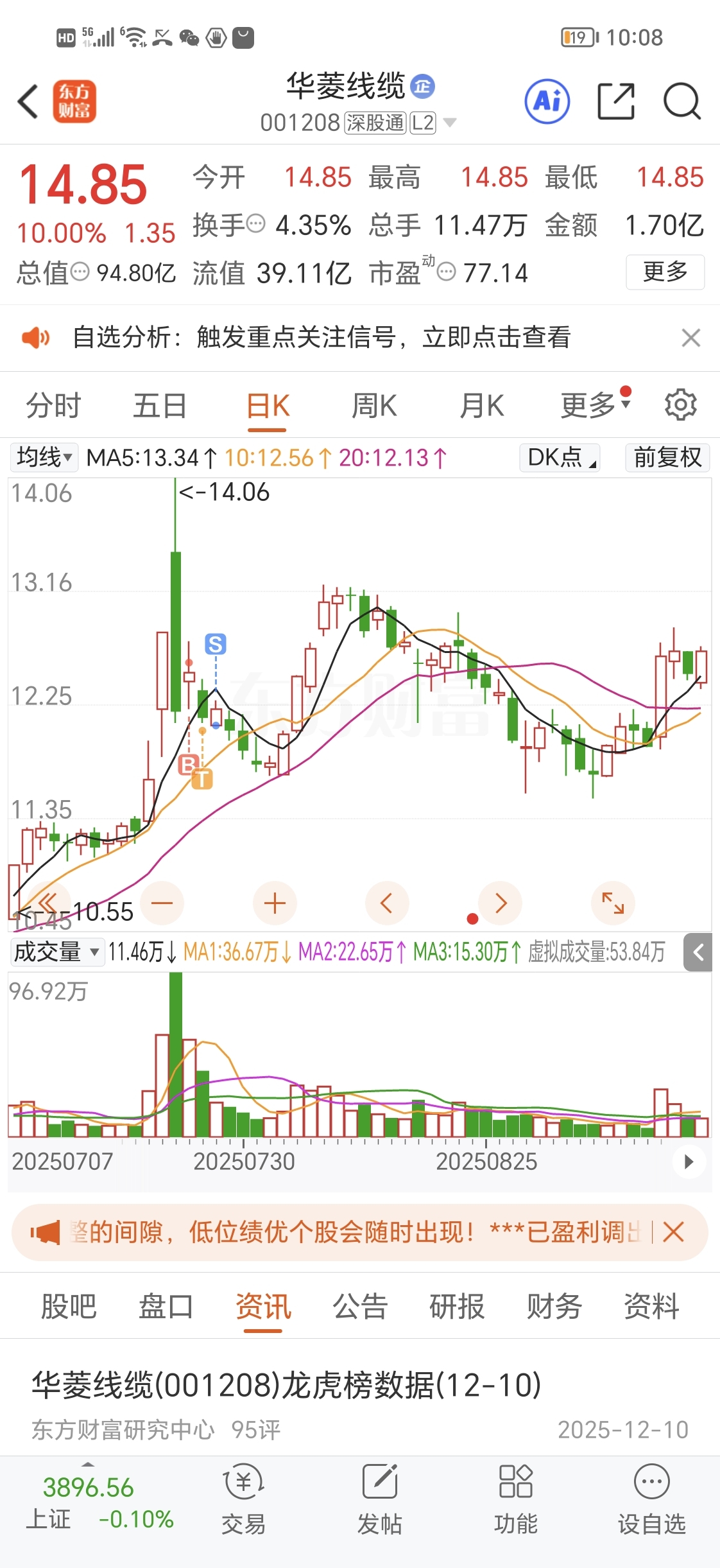 $华菱线缆(SZ001208)$ 华菱这个票上次我就是涨停后低吸,这次想今天低吸呢一字板了。你低吸了就吃面,不吸他就上去了。核心原因是上次走的雅下水电站概念不如这次商业航天强。先选板块后选票才是龙头战法最关键的一点。