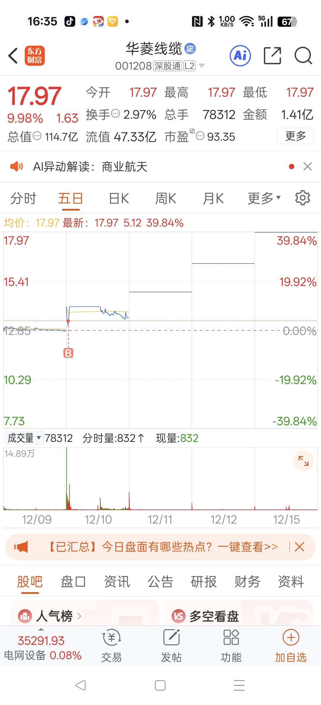 $华菱线缆(SZ001208)$ 十二月全靠你了,感谢华菱线缆主力