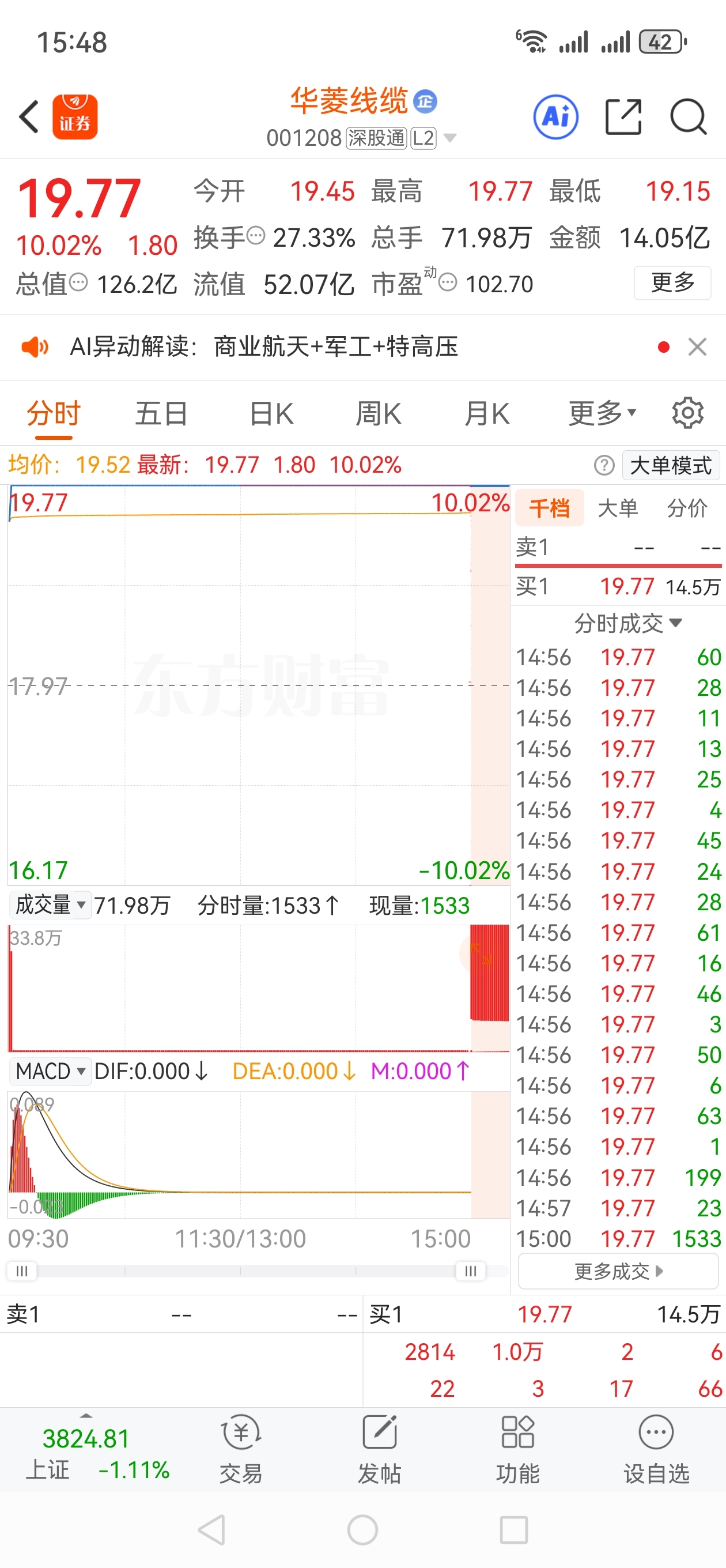 $华菱线缆(SZ001208)$ 明天还是有预期一字板的