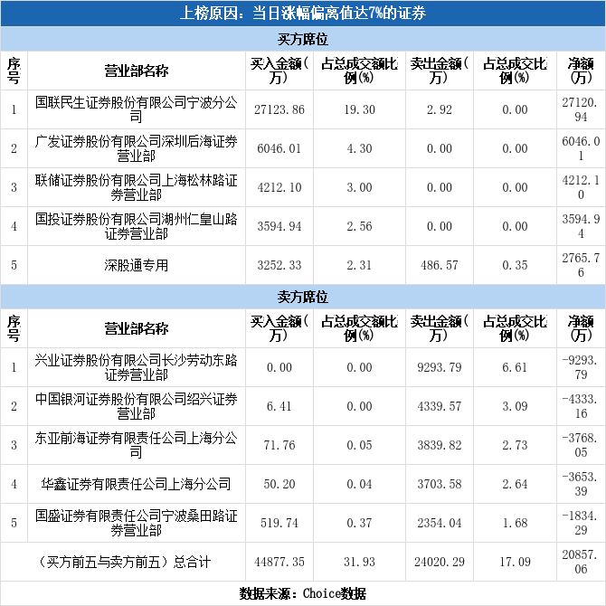 深股通现身龙虎榜,华菱线缆涨停(12-16)