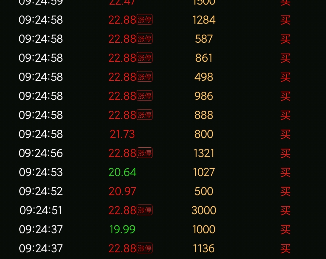 竞价都挂涨停买,商业航天持续发酵根本走不完,继续强势上涨,22.88……这K线图
