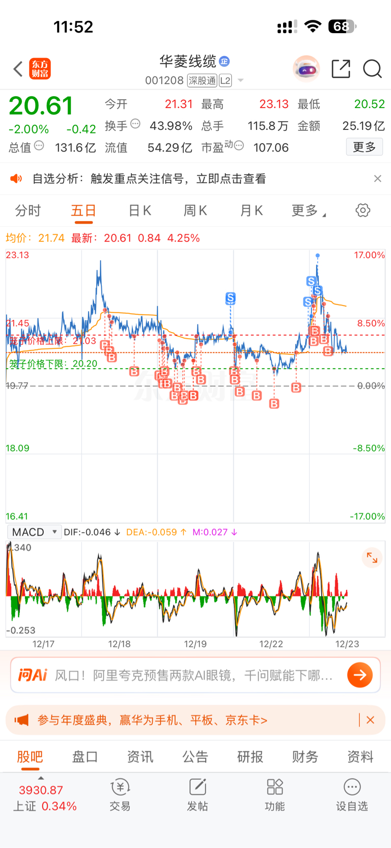 $华菱线缆(SZ001208)$ 格局了三天,天天加仓,涨停我就格局了一下,山顶卖了300股,剩下的几千股现在绿嘛了,还是不能格局