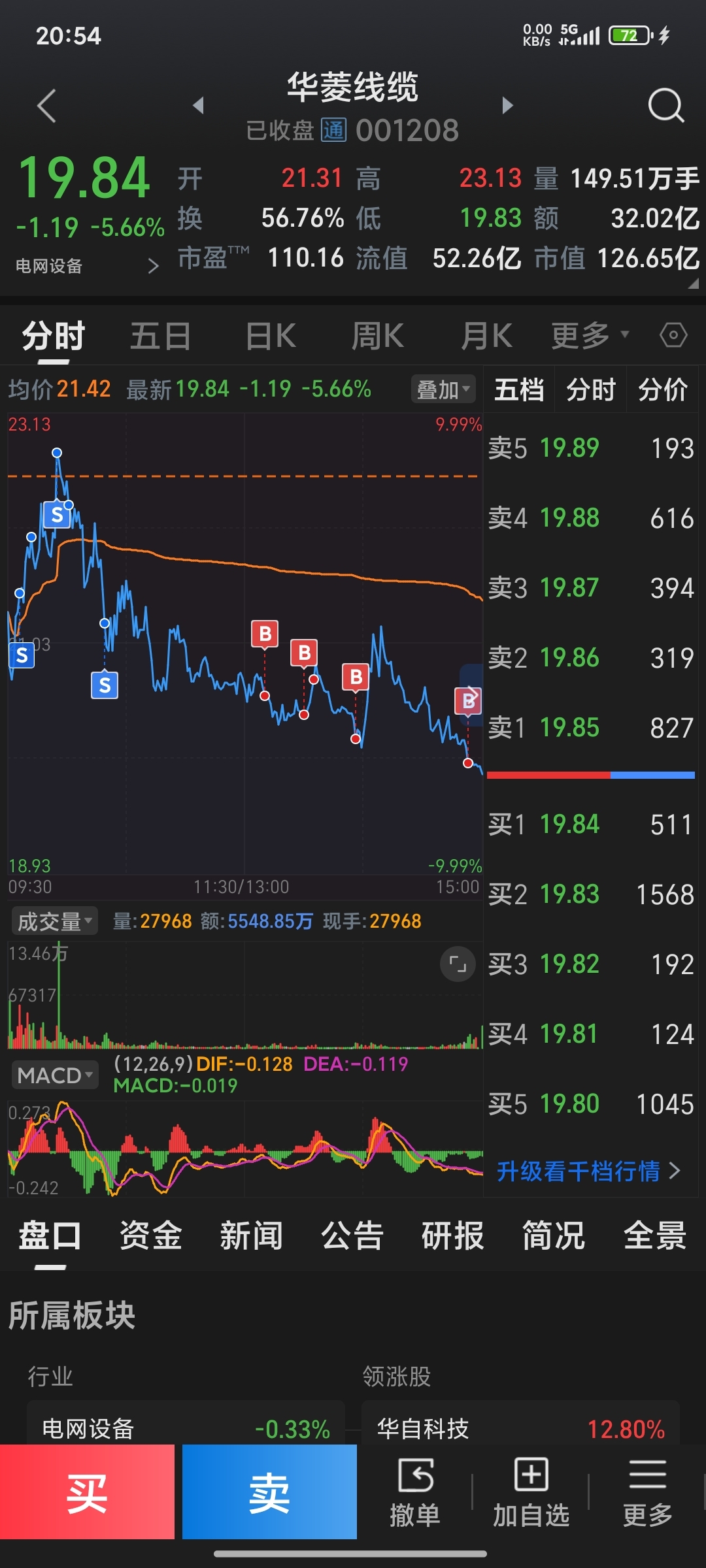 $华菱线缆(SZ001208)$ 忙忙碌碌的一天,做了个大t,可惜下午接早了