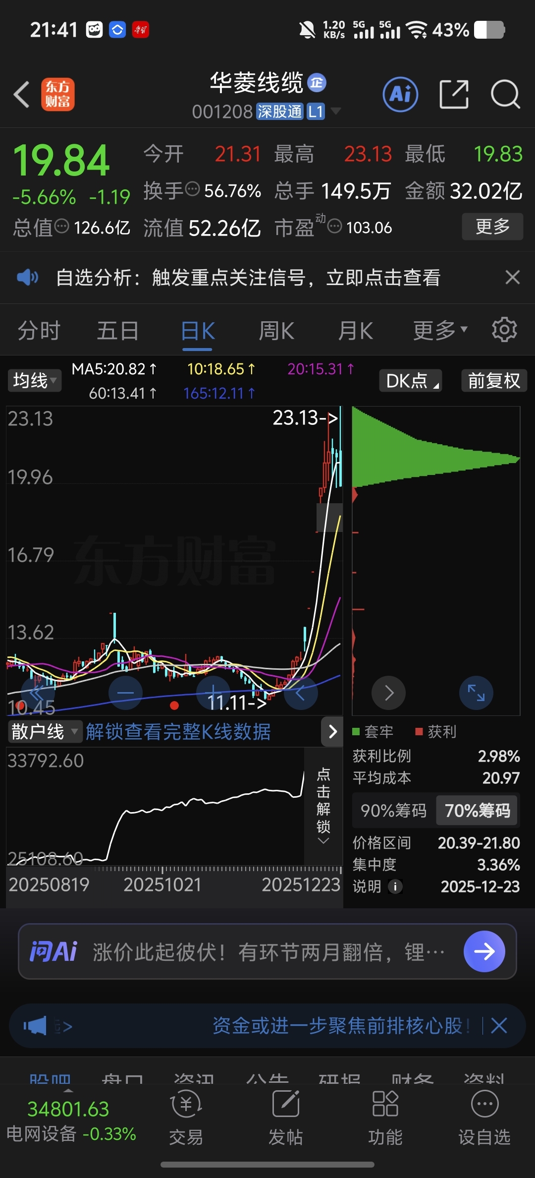 $华菱线缆(SZ001208)$ 大家都被换在山顶了呗