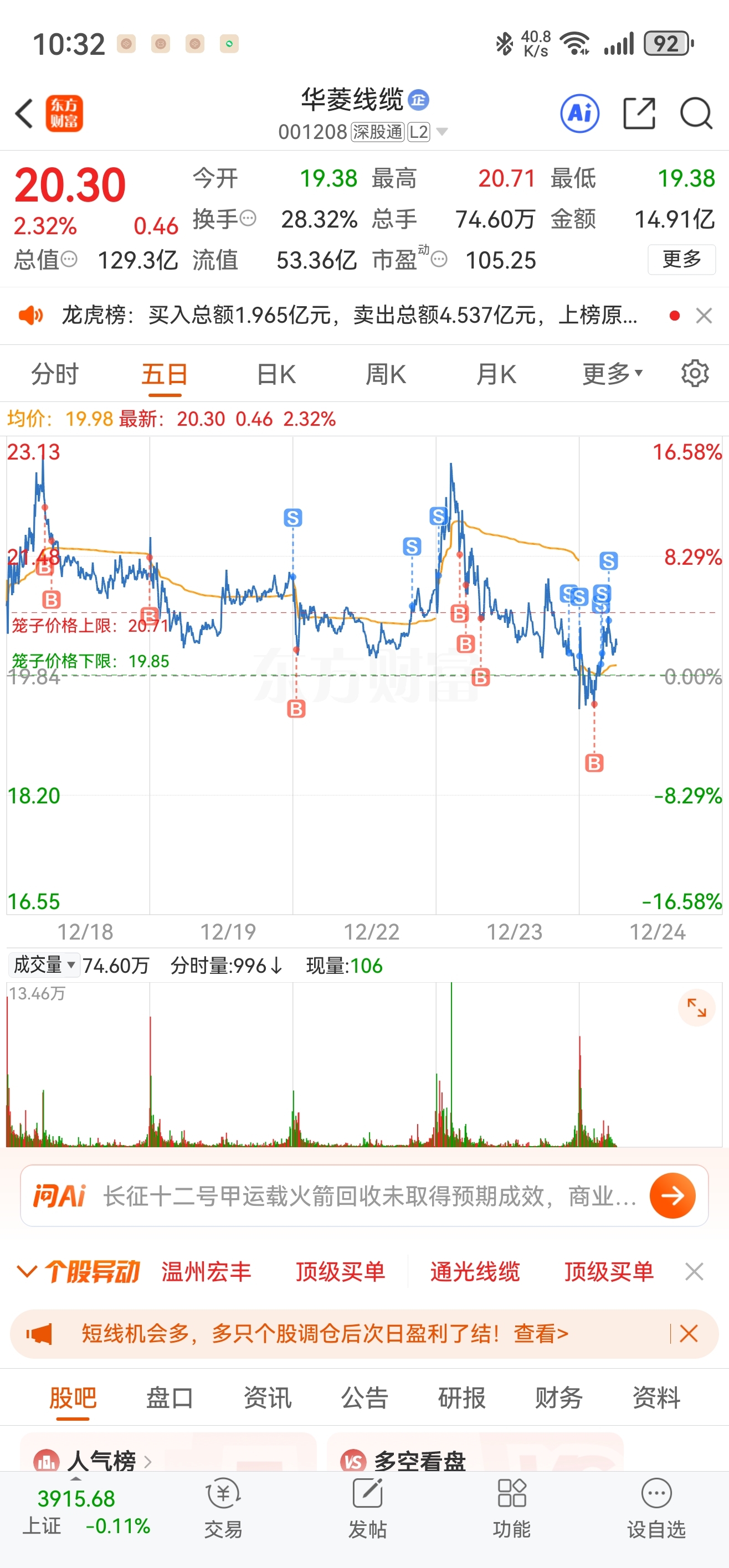 $华菱线缆(SZ001208)$ 冲高就卖,底下就捡