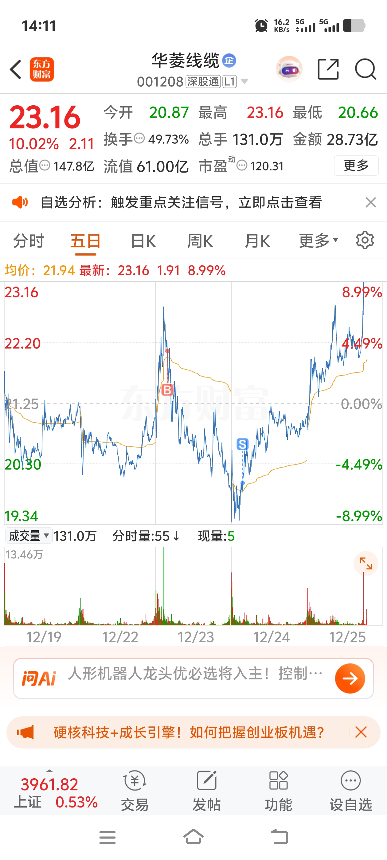 $华菱线缆(SZ001208)$ 不说了,只有当韭菜的命