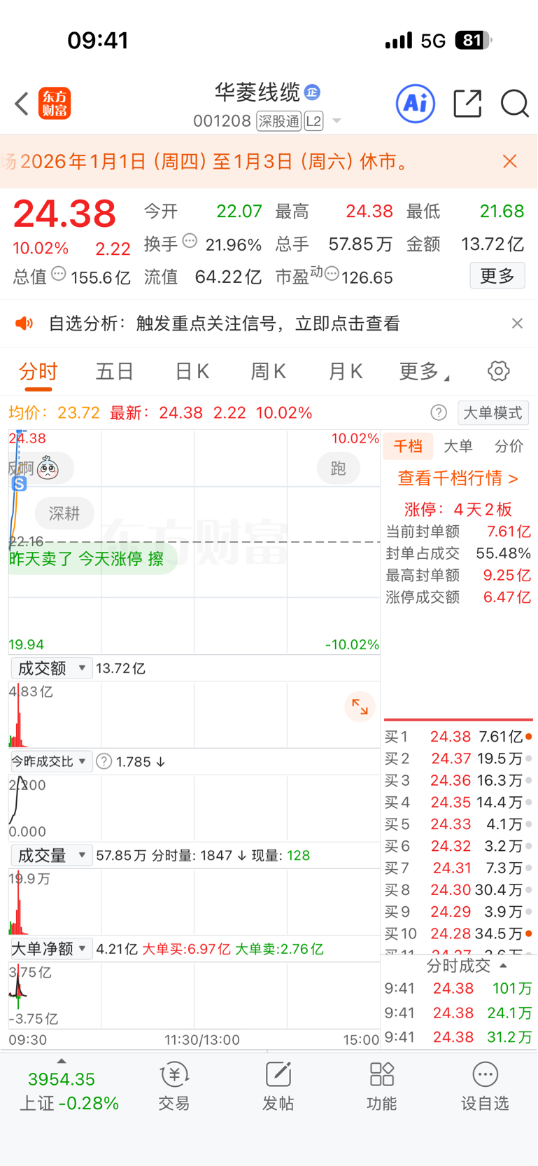 $华菱线缆(SZ001208)$ 是我没格局了,一炸板就慌了