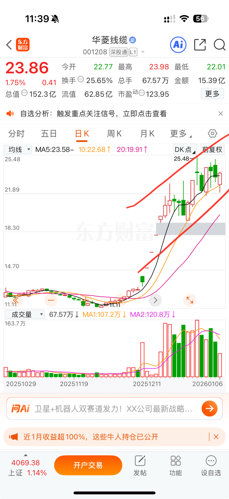 $华菱线缆(SZ001208)$ 这趋势轨道很好啊!沿着均线慢慢上升,就是比较磨人,不会做 T 就容易亏钱。