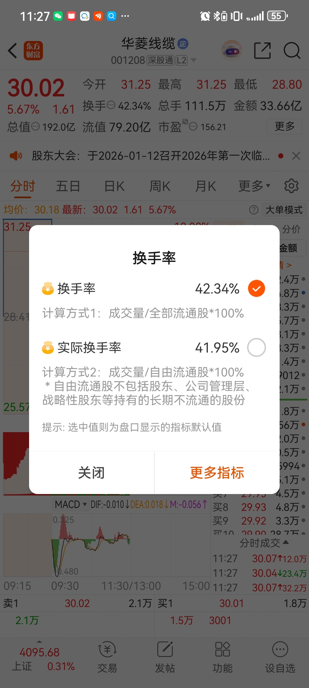 $华菱线缆(SZ001208)$ 换手一致,今天没有拉升意愿,震荡出货