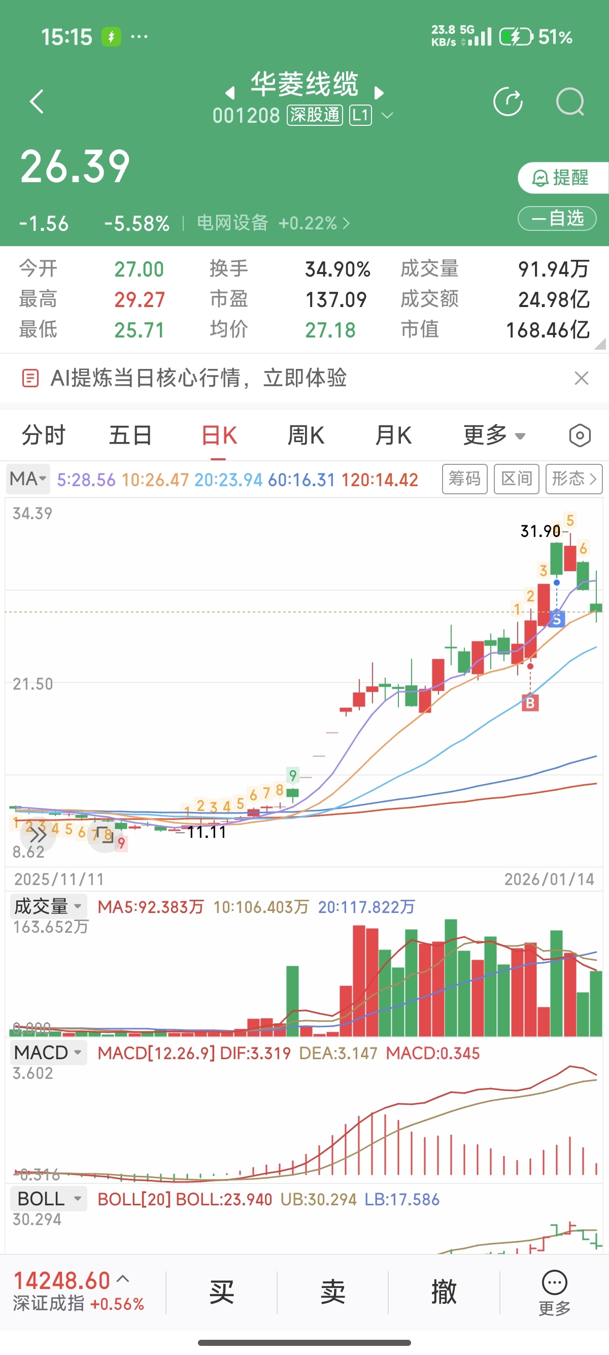 $华菱线缆(SZ001208)$ 幸好前天涨停出了