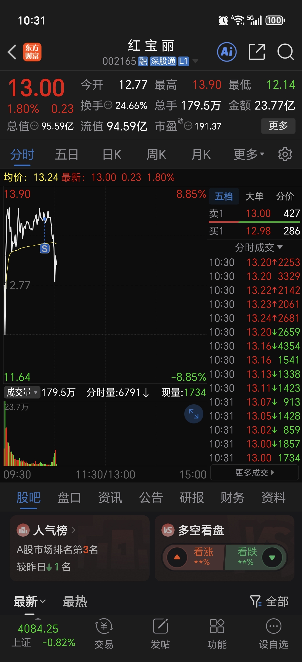 $华菱线缆(SZ001208)$ 上午清了红宝丽 转战华菱线缆