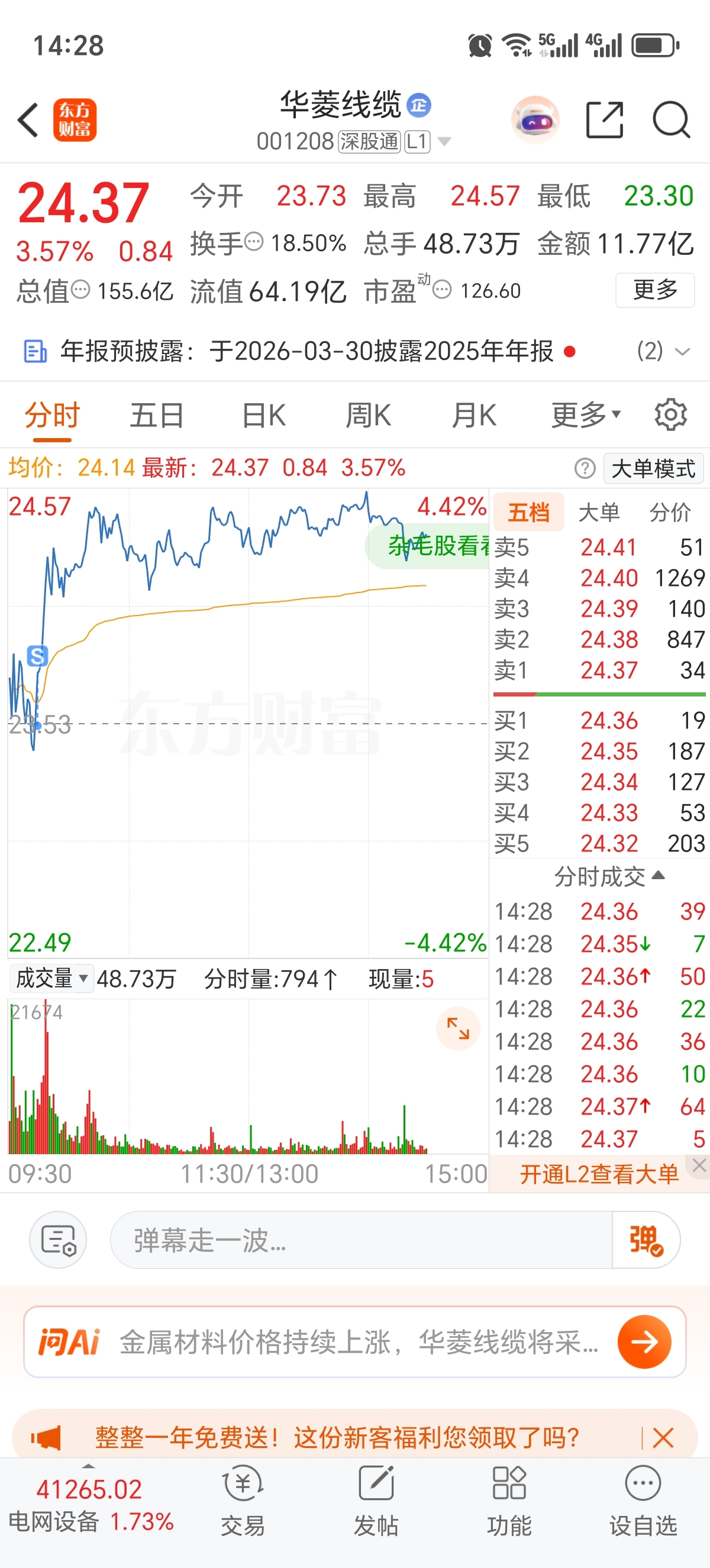 $华菱线缆(SZ001208)$ 看走势以为要跌,t飞了