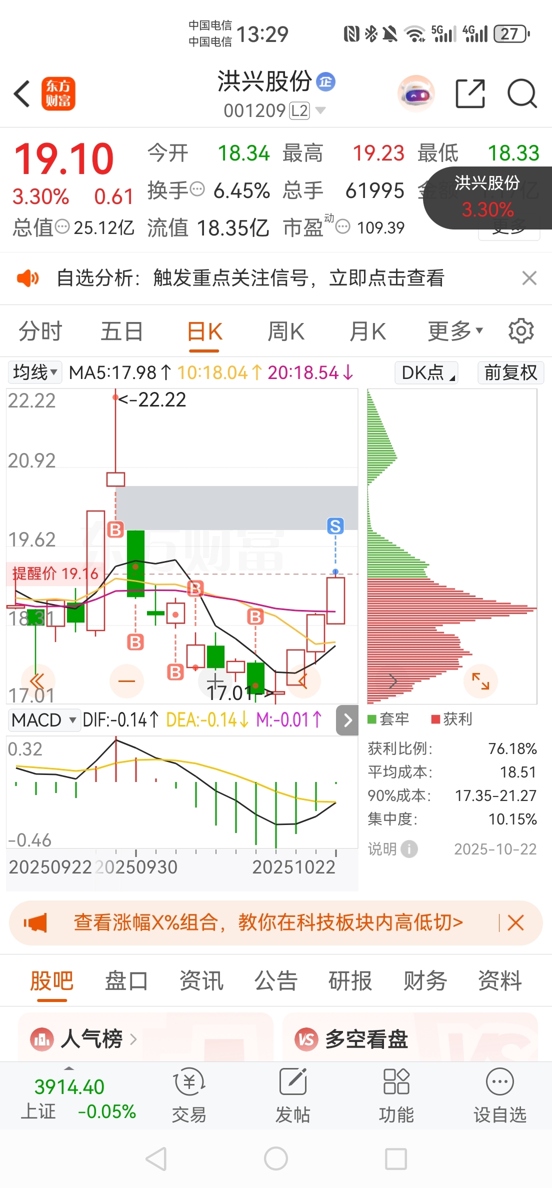 $洪兴股份(SZ001209)$ 打板失败终于回本了,留下来的发财