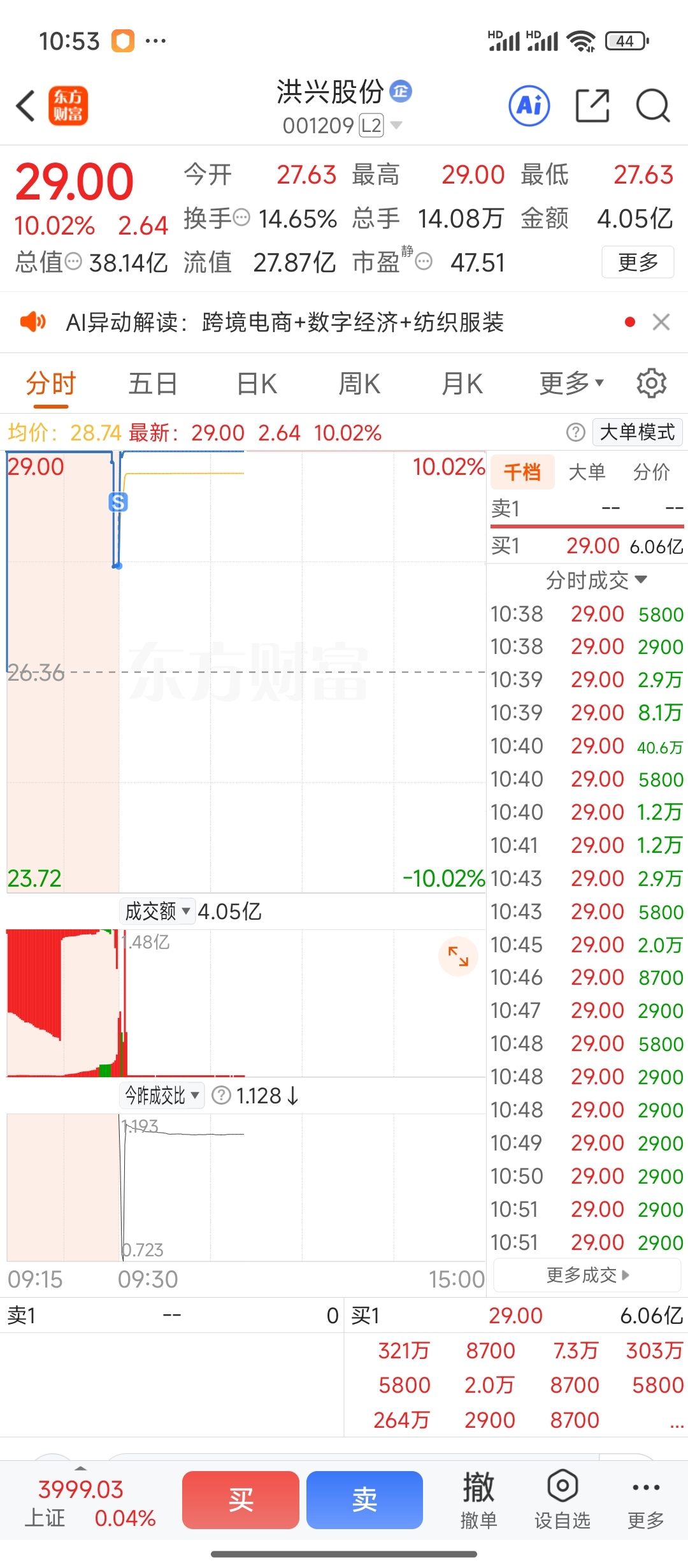$洪兴股份(SZ001209)$ 竞价走了让利市场,主要怕手速不够,今天消费这么强,可能是真卖飞了,三哥的大局观越来越好了,下次还来陪三哥玩