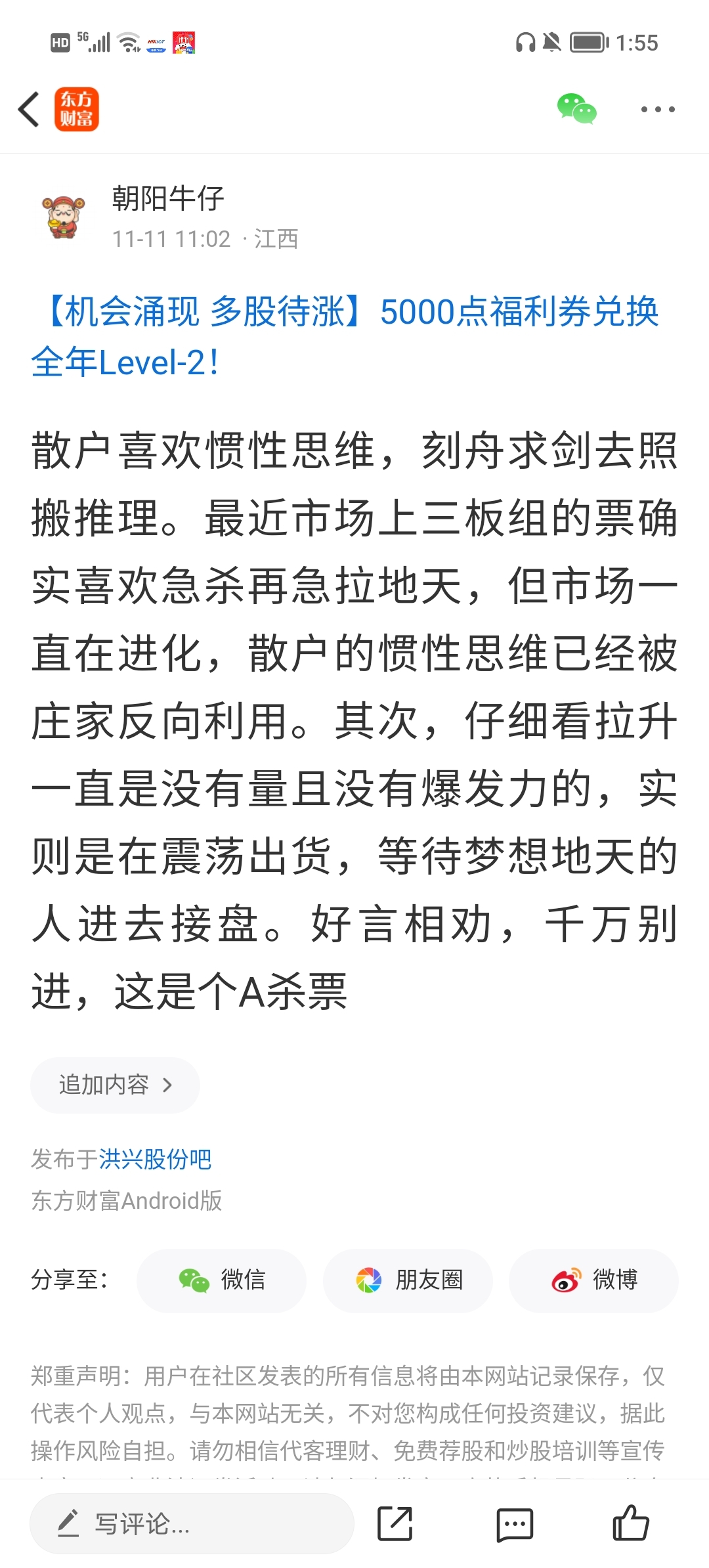 温馨提示: 1.根据《证券法》规定,禁止编造、传播虚假信息或者误导性信息,扰乱证券市场;2.用户在本社区发表的所有资料、言论等仅代表个人观点,与本网站立场无关,不对您构成任何投资建议。用户应基于自己的独立判断,自行决定证券投资并承担相应风险。《东方财富社区管理规定》
