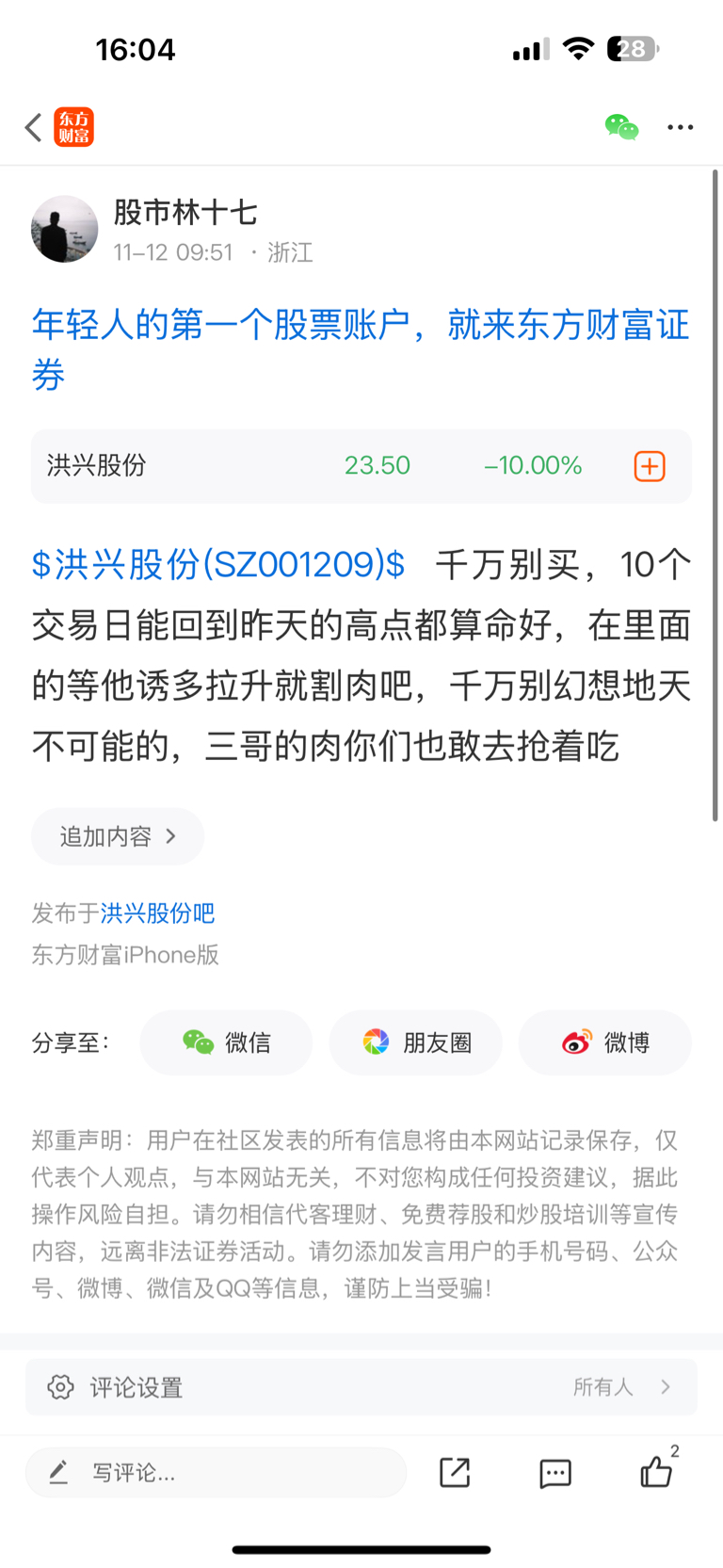 $洪兴股份(SZ001209)$ 昨晚叫你们跑,今天也在叫你们跑别进,因为我吃过亏,所以好言相劝。并不是怕你们挣钱我眼红。还在幻想反包的,明天三哥会让你们梦醒。