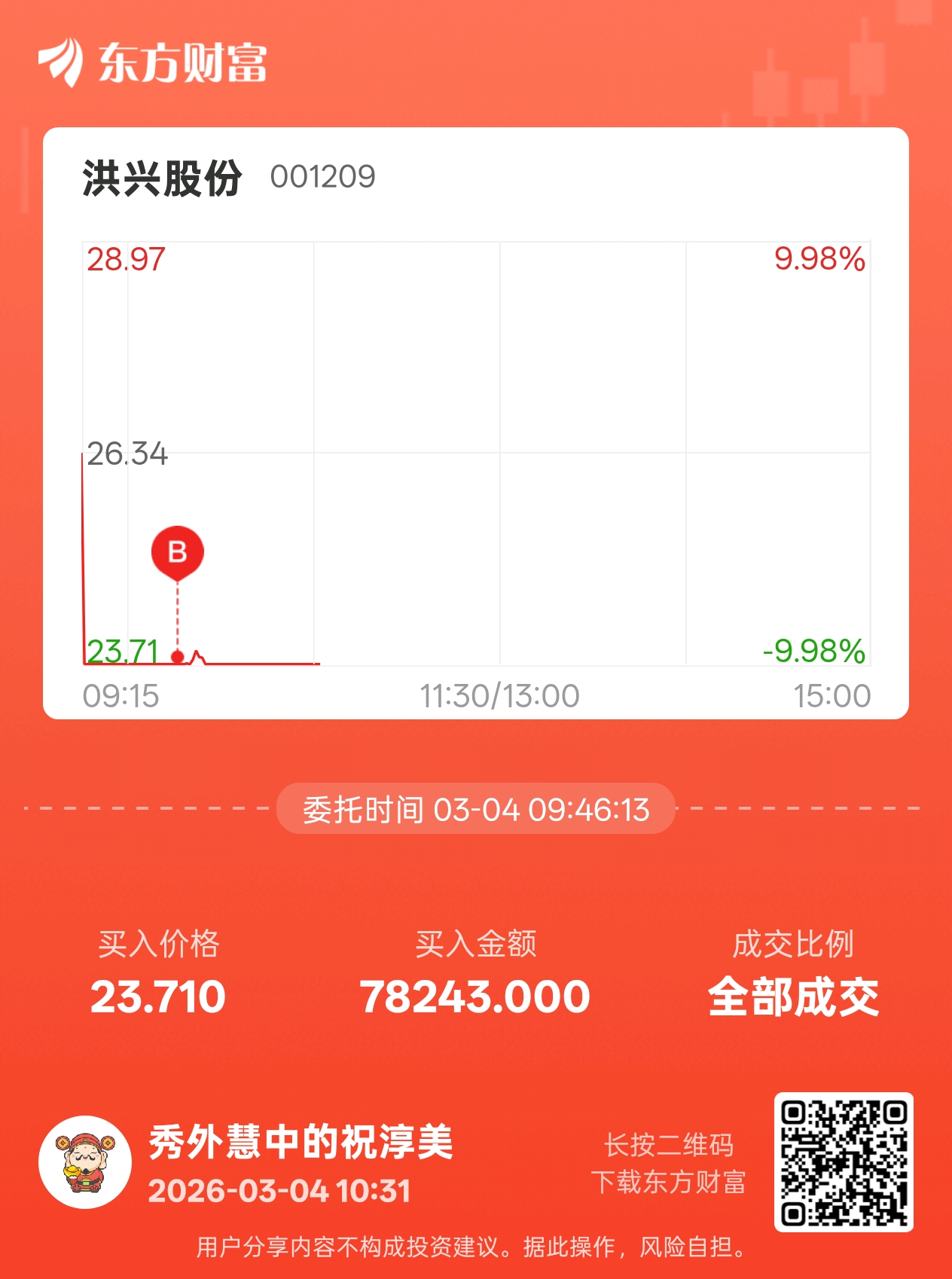 温馨提示: 1.根据《证券法》规定,禁止编造、传播虚假信息或者误导性信息,扰乱证券市场;2.用户在本社区发表的所有资料、言论等仅代表个人观点,与本网站立场无关,不对您构成任何投资建议。用户应基于自己的独立判断,自行决定证券投资并承担相应风险。《东方财富社区管理规定》
