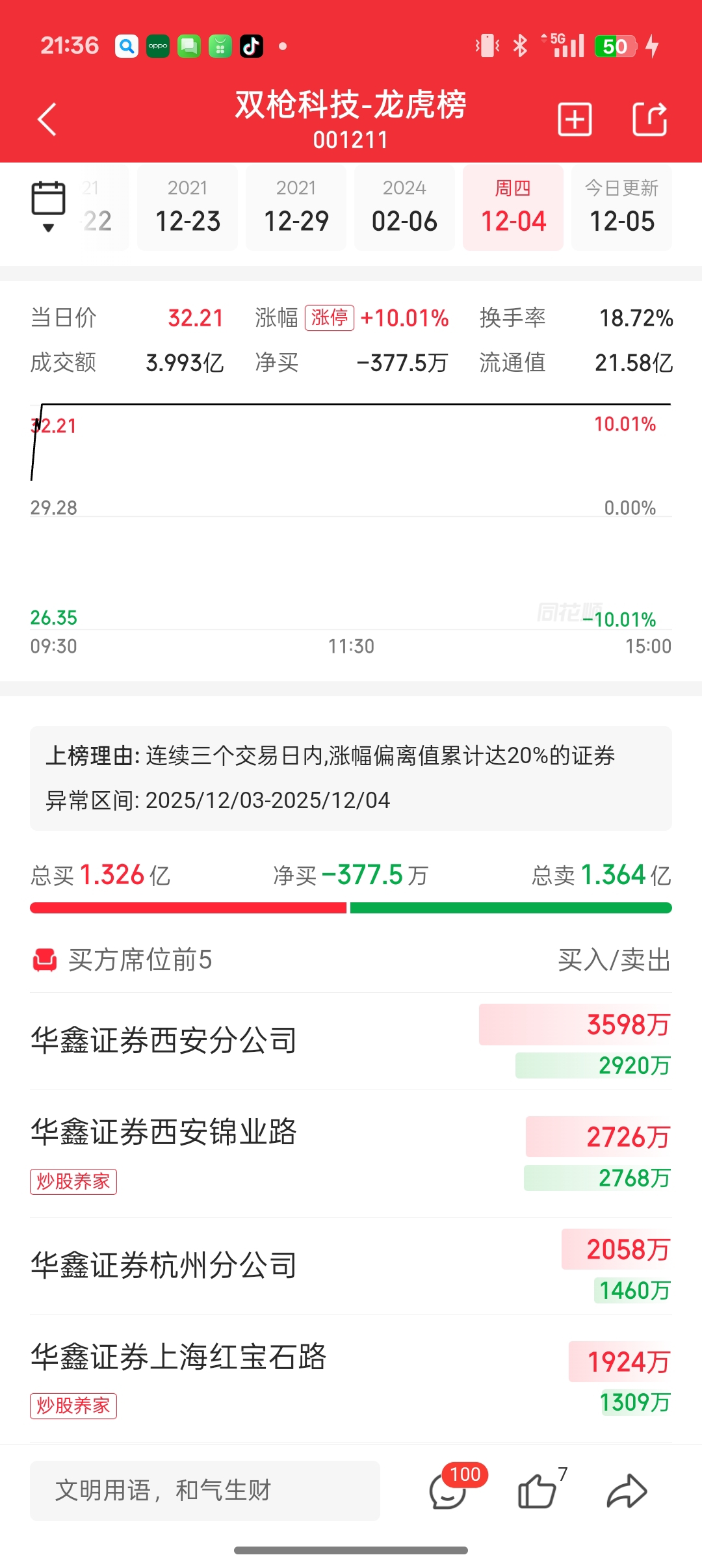 $双枪科技(SZ001211)$ 星期一反包百分之百养家今天没动